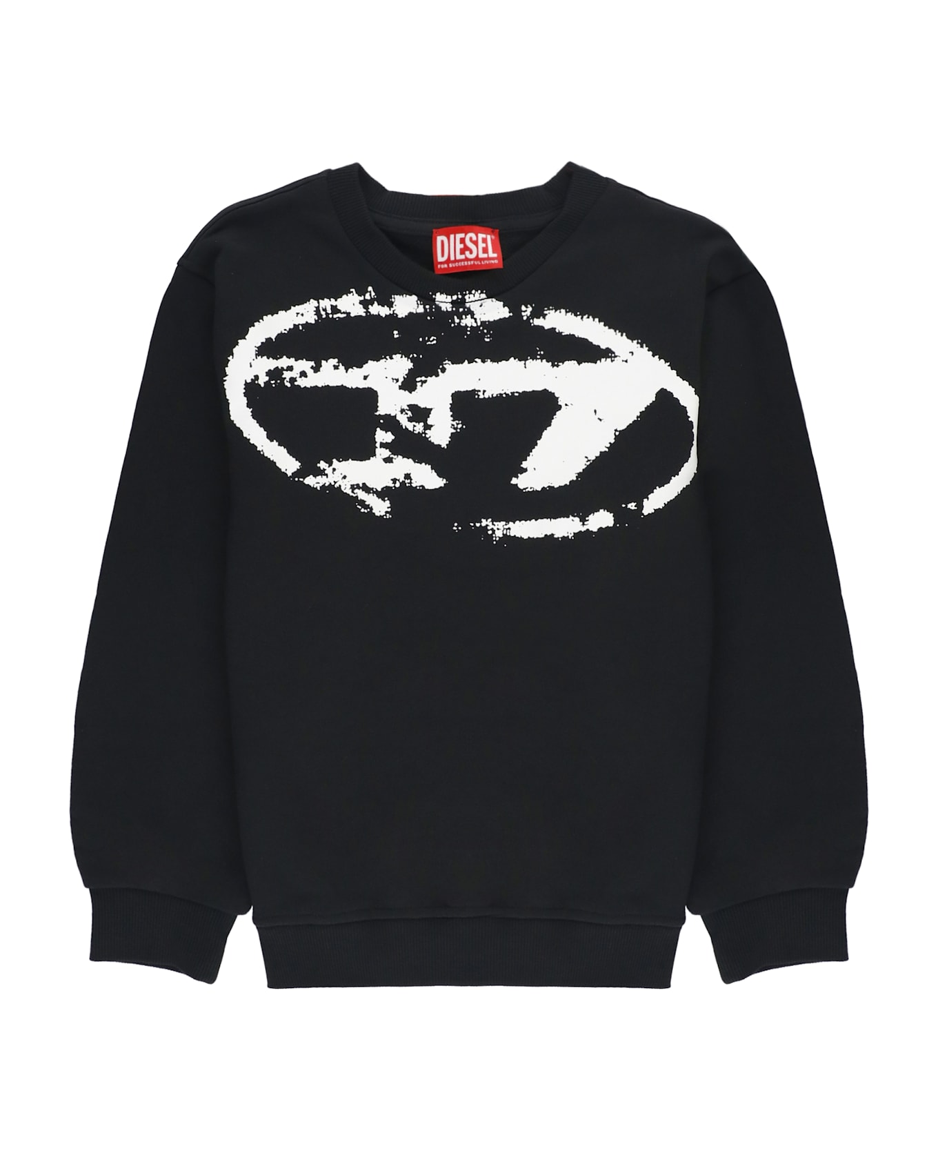 - Black Diesel Kids cotton sweatshirt for boy and girl - Crew neck - Long sleeves - Front contrasting color logo - Elastic ribbed trims