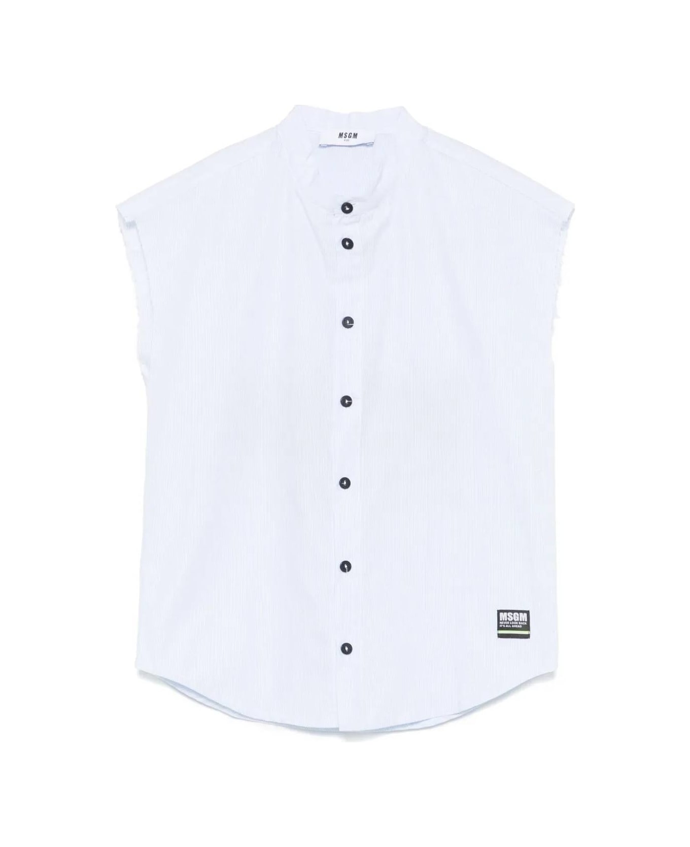 celeste chiusura frontale con bottoni colletto alla coreana applicazione laterale con logo e sul retro orlo curvo