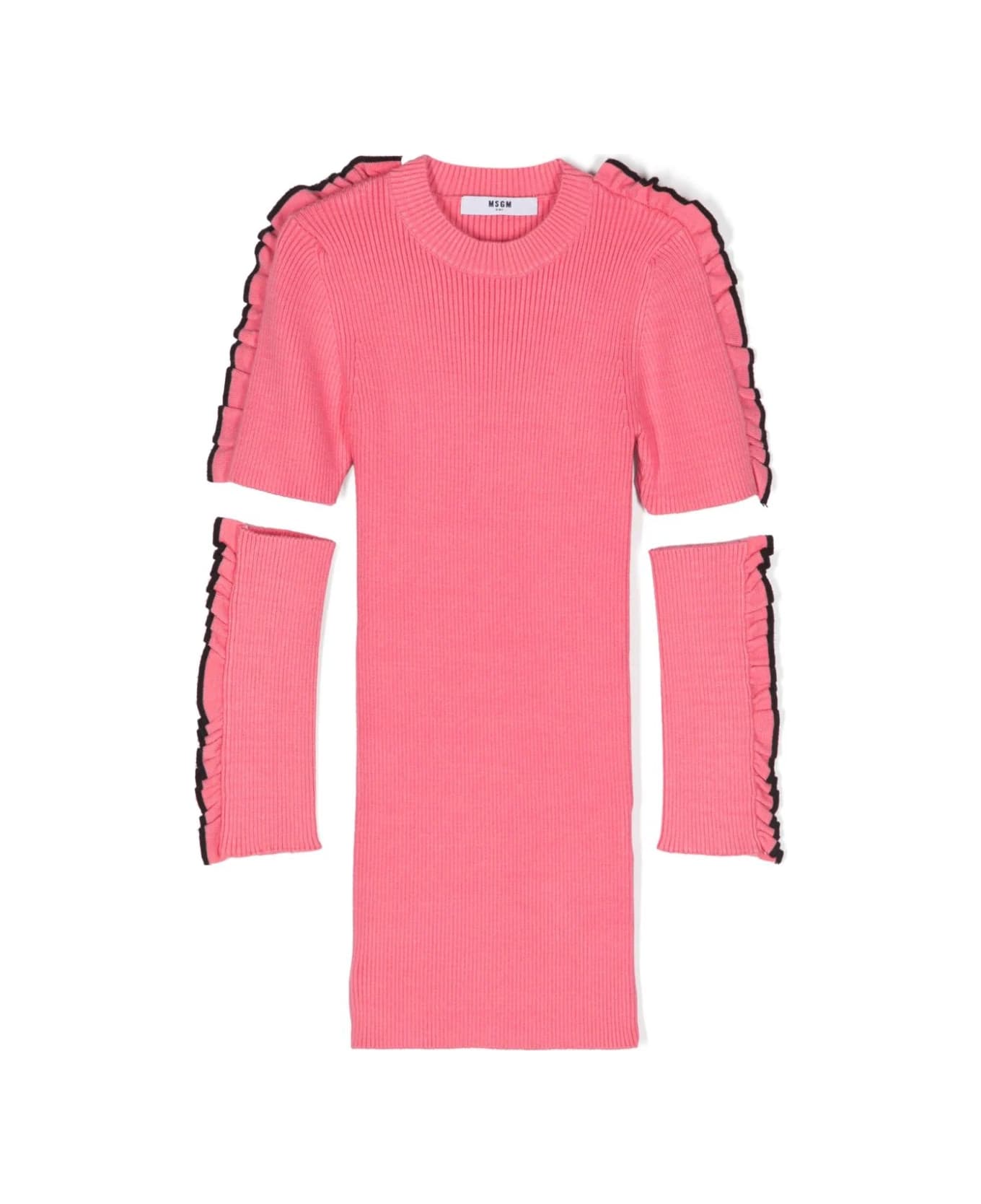 Abito girocollo in maglia a coste con dettagli a volant e logo ricamato sul retro