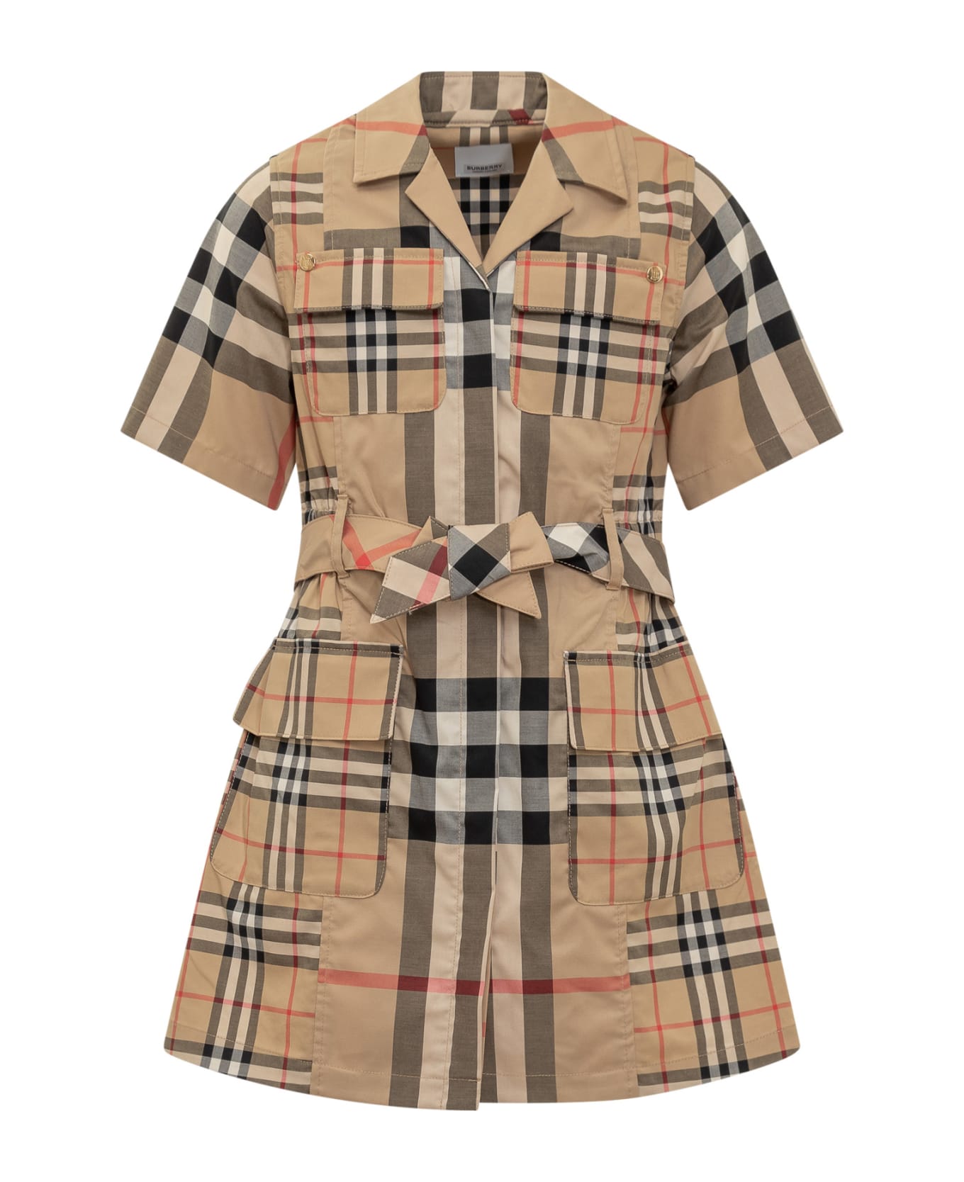 Short sleeved dress. Button closure. Two lateral flap pockets. Two chest pockets. Belt at the waist. Check print. Composition: Reference Size In Years., 95% Cotton, 5% Elastane