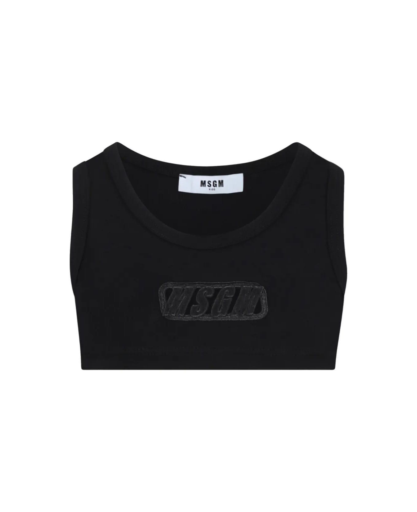 Top con logo applicato Caratteristiche girocollo nero senza maniche Composizione cotone 100% Istruzioni per il lavaggio Leggi le indicazioni del produttore