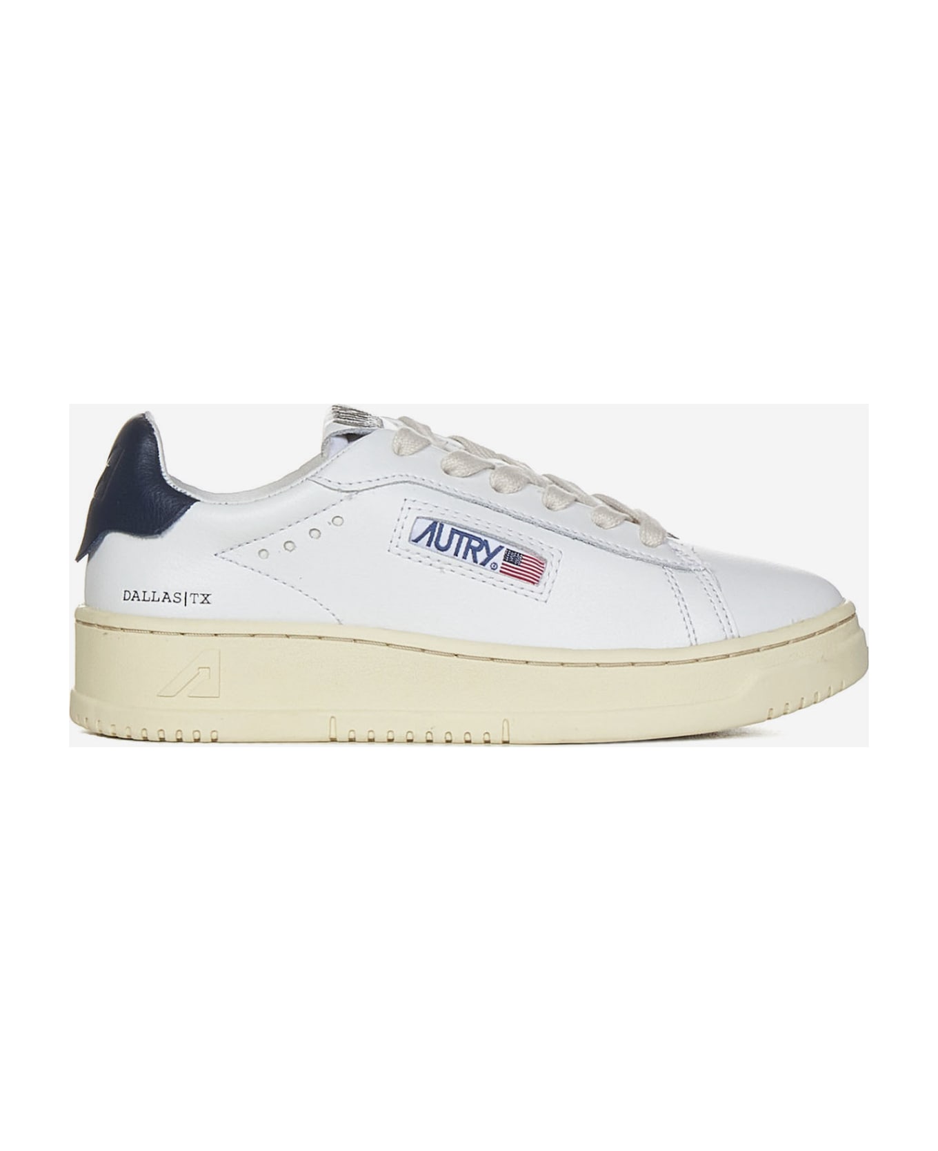 • White leather upper with visible topstitching; Blue leather insert at back with embossed logo