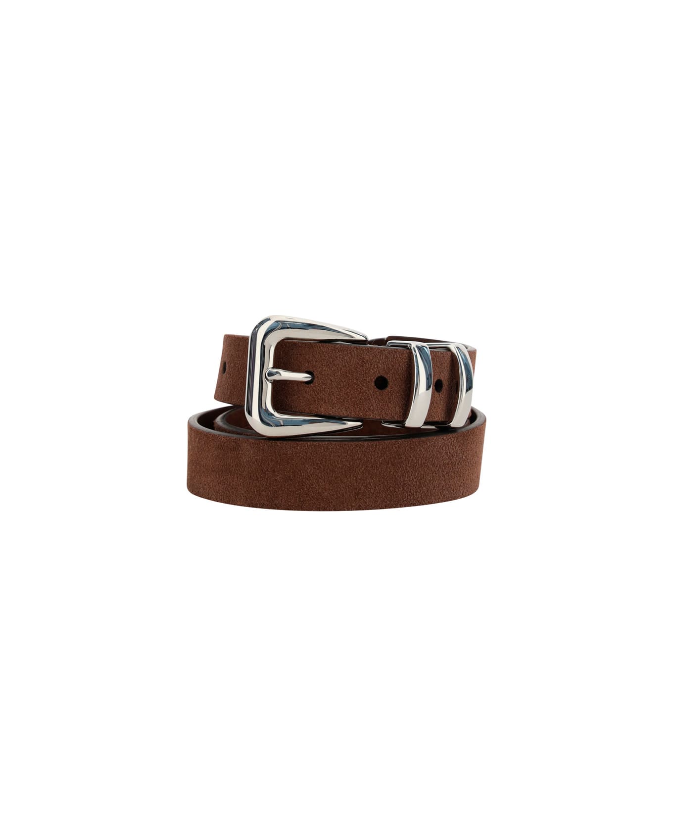 Calfskin belt by brunello cucinelli, suede design, metallic buckle on the front with mirror effect. thickness: 2,5 cm.