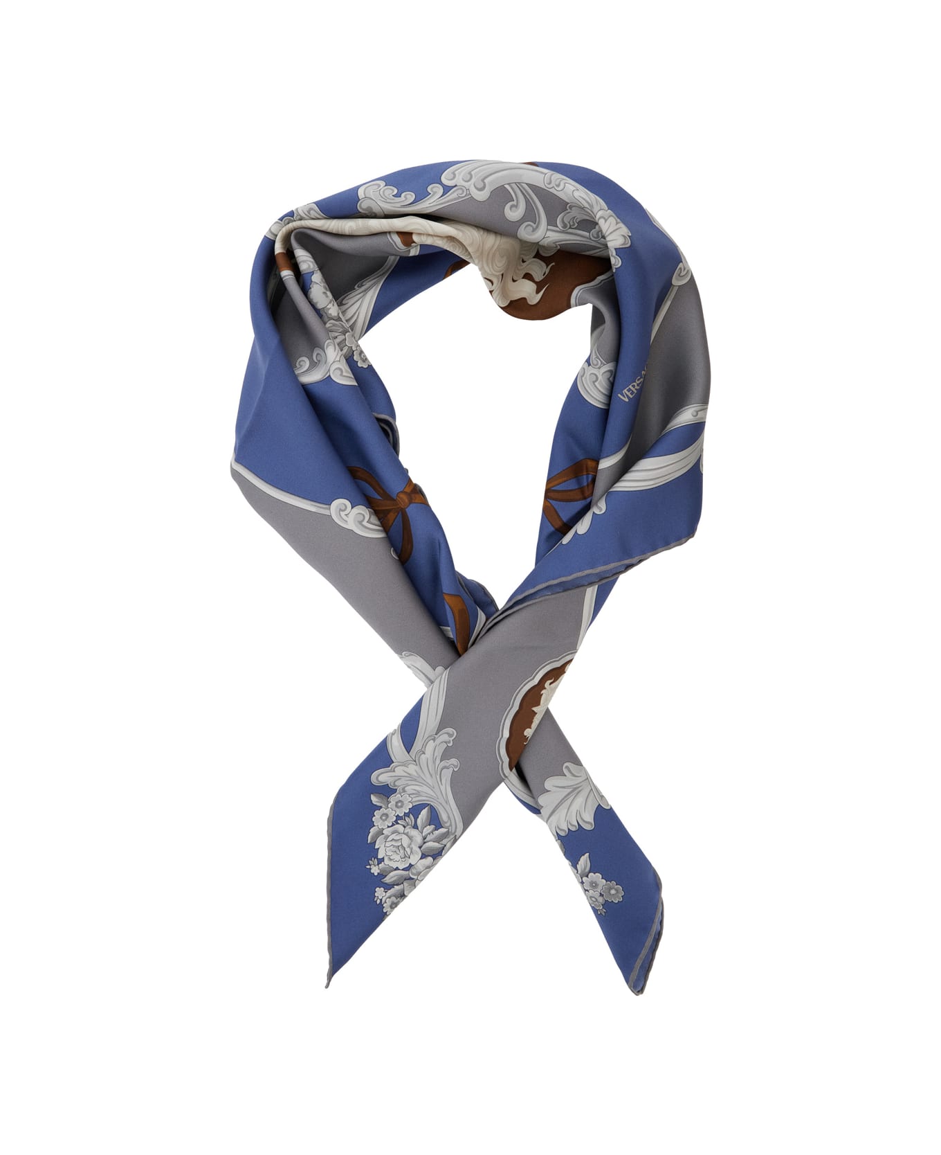 Scarf Blue All-over geometric motif print Silk Dimensions: 90x90 cm