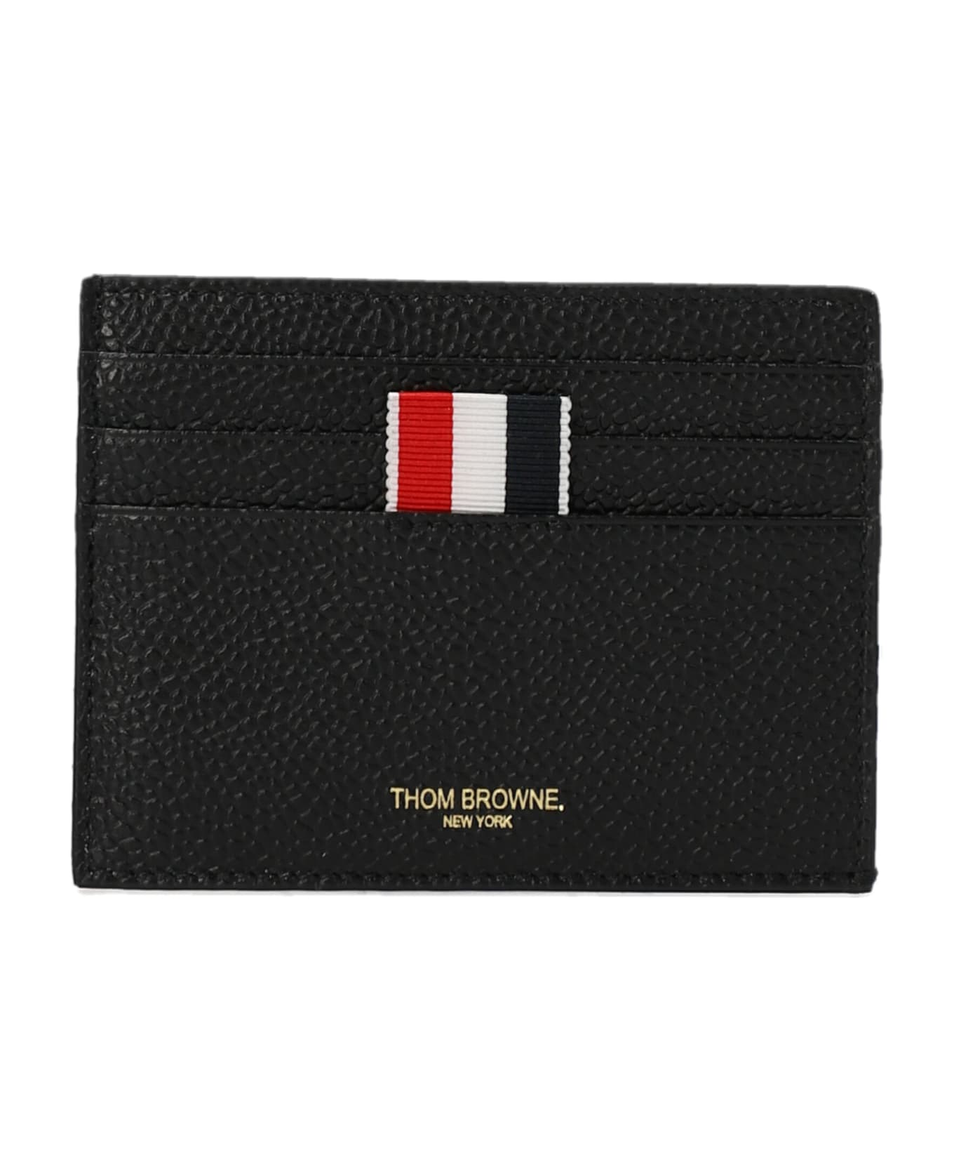 'Pebble Grain' leather card holder with a front logo print and a logo tongue detail.