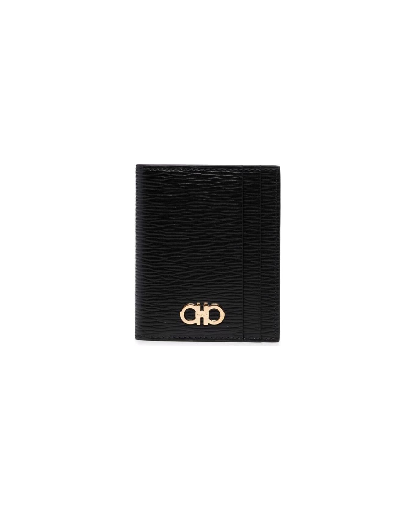 Black Cardholder With Gold-tone Gancini Logo In Calf Leather Man