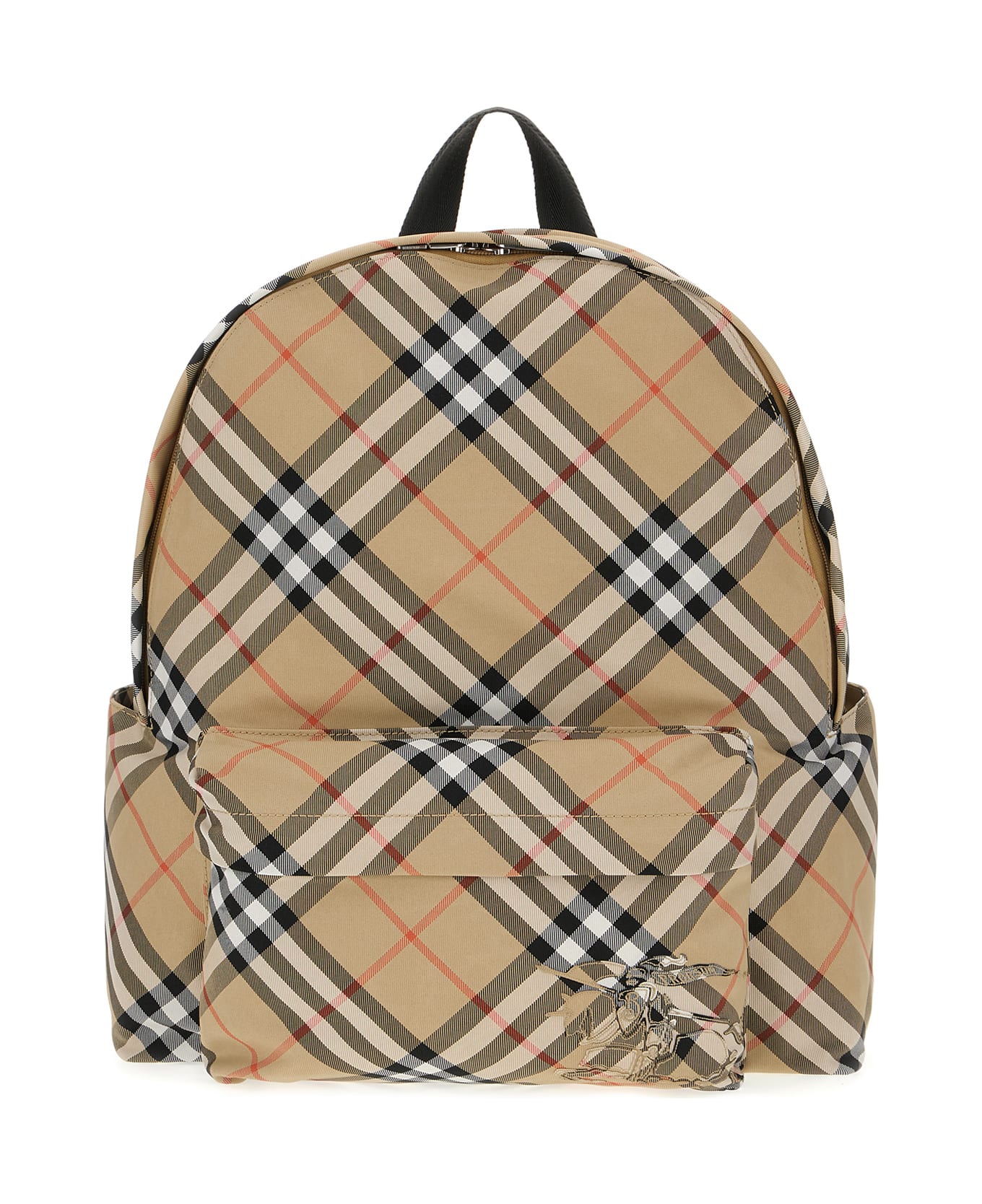 Backpack realized in canvas with leather inserts characterized by Burberry Check print on the entire surface enriched by metal lettering logo at the front. -Leather handle -Adjustable fabric shoulder straps -Zip closure -A zip pocket at the front -Lined interior with a slit pocket and a zip pocket