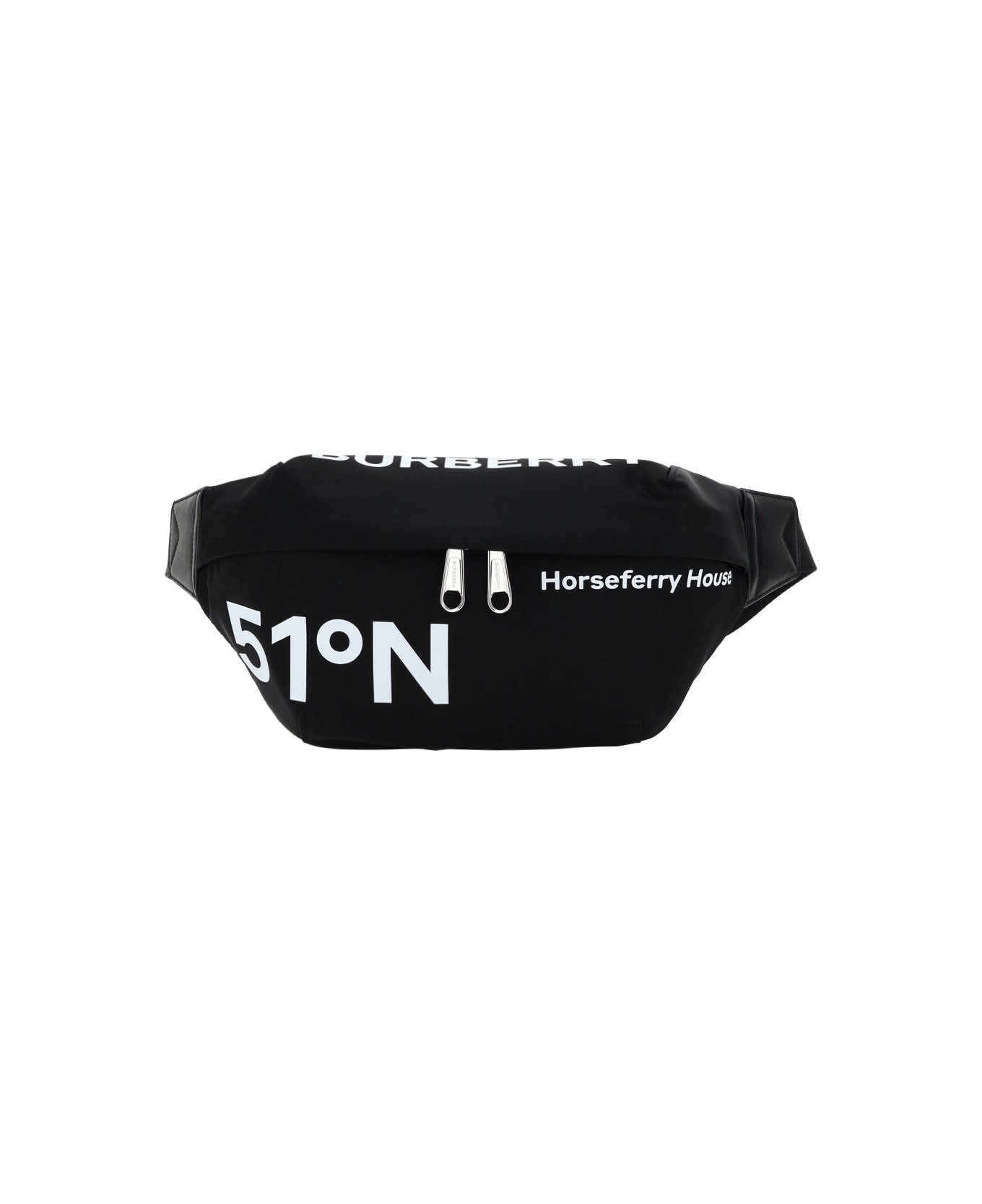 Sonny fanny pack by burberry, adjustable waistband and clip closure, all-over contrasting printed lettering, front zipper closure, back welt pocket. Composition: 100% % Polyamide