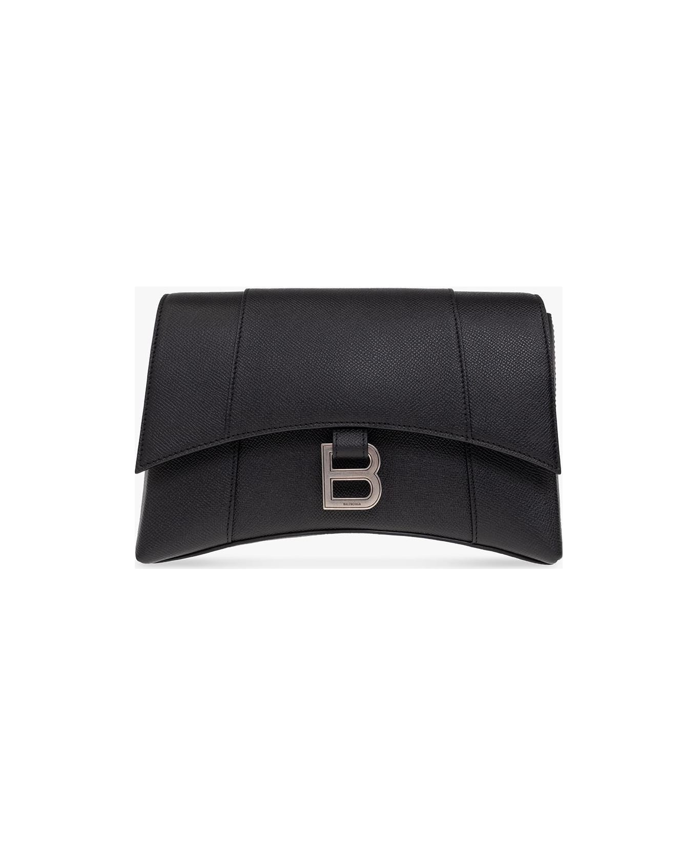 Black 'Downtown XS' shoulder bag from Balenciaga. Made of leather, this model is complete with a snap closure, shoulder strap, silver-tone metal hardware and one internal compartment with three pockets.