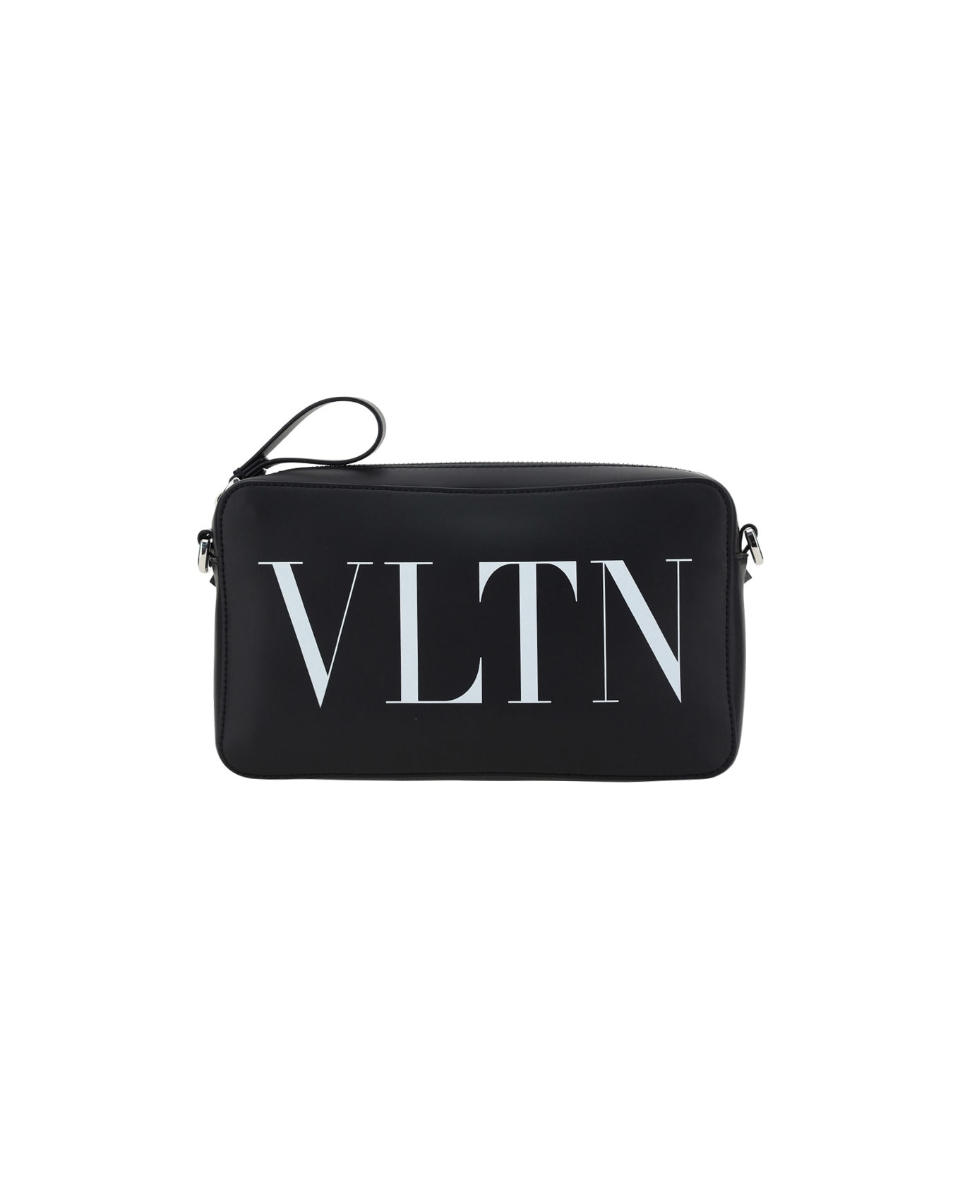 Vltn shoulder bag by valentino garavani, top zipper closure, geometric design, removable and adjustable leather shoulder strap, iconic brand monogram in contrast on front, iconic brand signature printed in contrast on back, interior welt pockets.