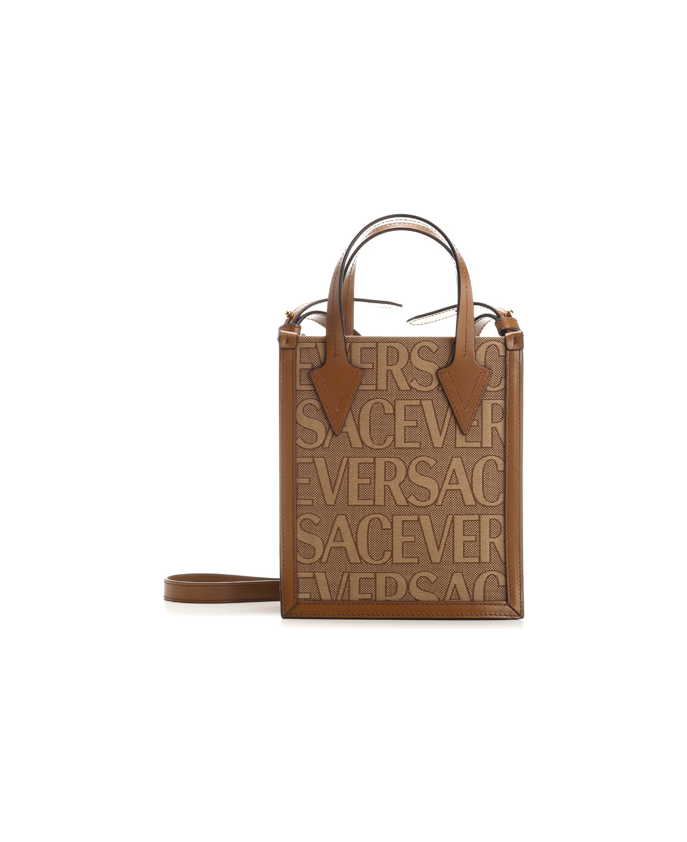 SMALL TOTE FABRIC+CALF LEATHER BEIGE+BROWN-ORO VERSACE