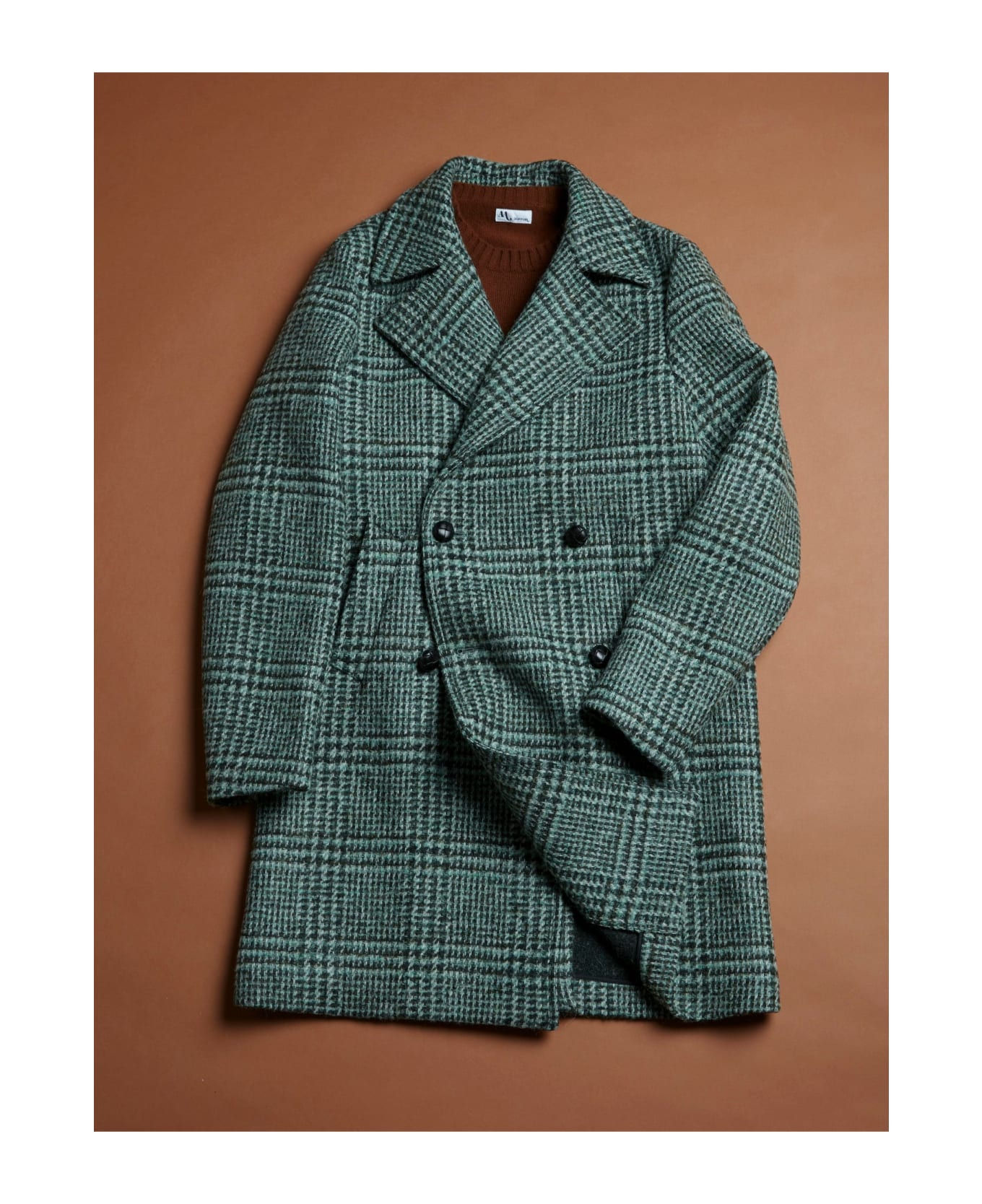 This double-breasted coat is made of virgin wool blend, for a better thermal isolation even during the coldest days. The Prince of Wales pattern and the 4 woven-leather buttons make the item timeless.