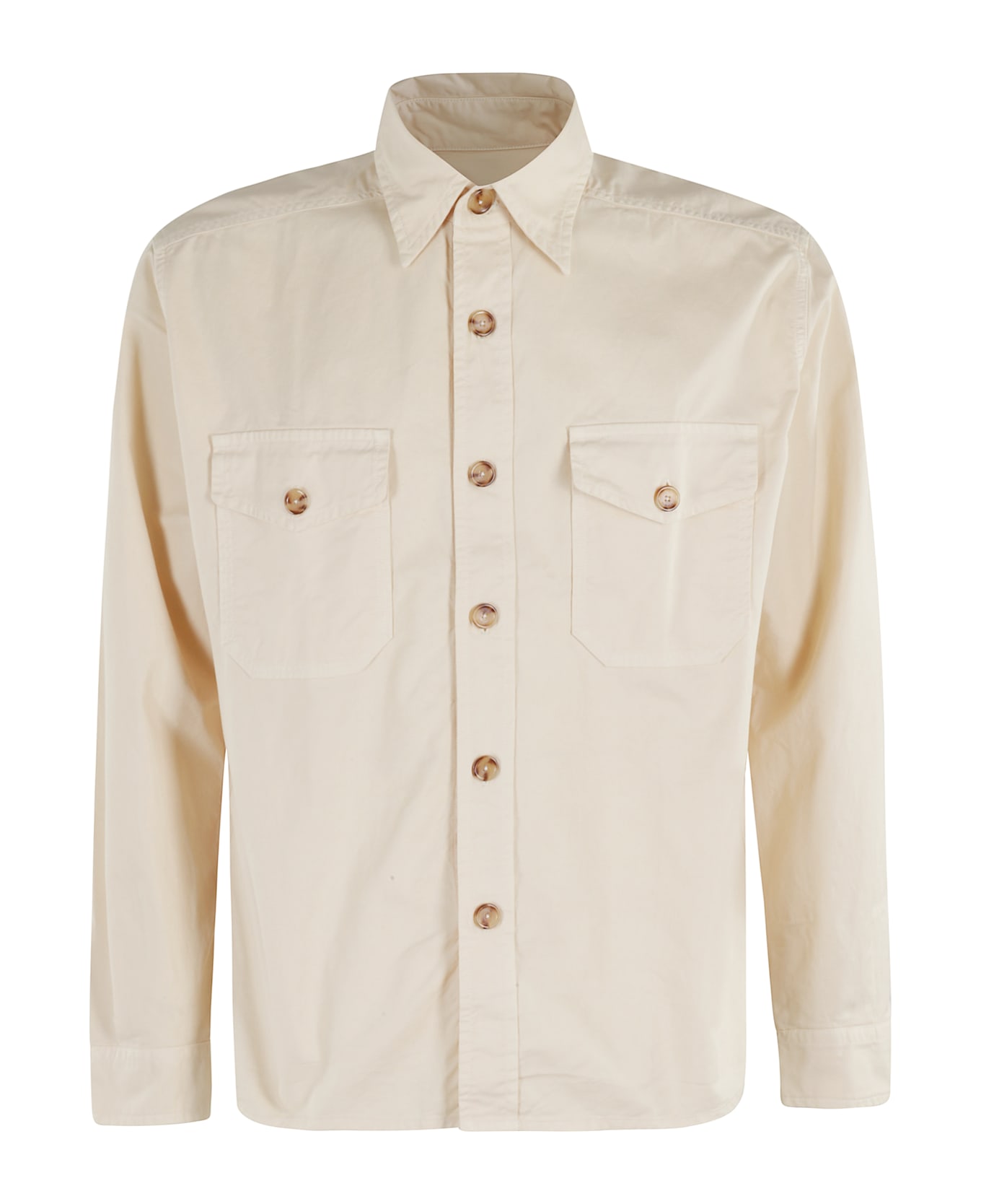Kenny shirt - Fortela - Cream color - Cotton canvas fabric - Pointed collar - Long sleeve with cuff and button - Patch pockets with flap and button - Front button closure - Loose fit