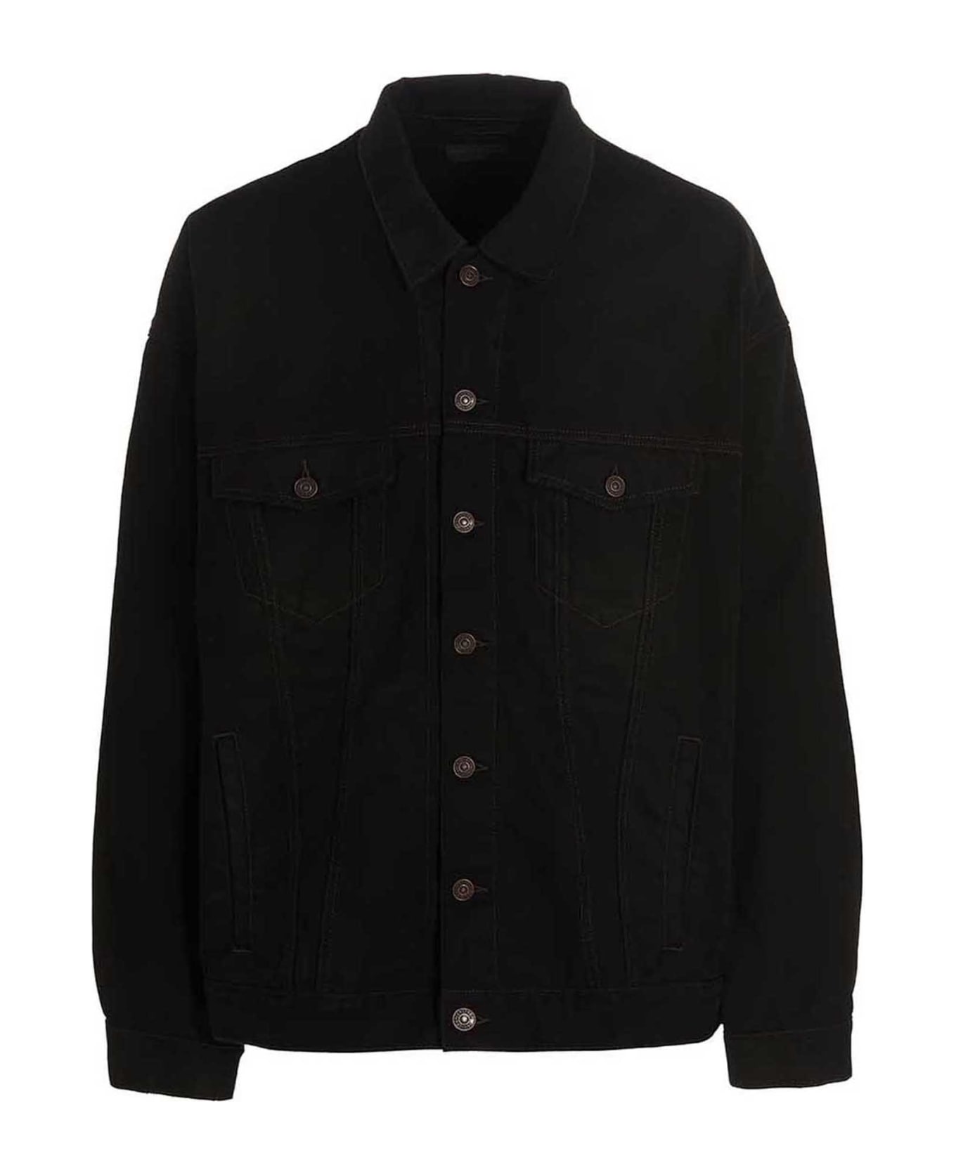 Cotton denim jacket with obscured logo embroidery at the back, a front button closure, pockets, long cuffed sleeves and used-effect details. Composition: 100% cotton