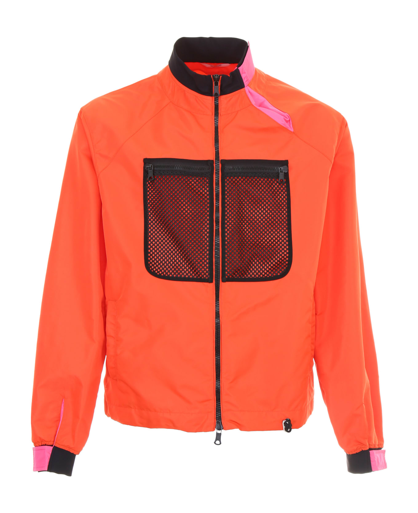Nylon jacket from the Valentino runway show. It features a mesh pocket on the front and contrast velcro straps on the neck and cuffs. Two-way zip closure, side welt pockets, drawstring on the hem, contrast jersey neck and cuffs. Model height is 186 cm and he is wearing a size IT 48.