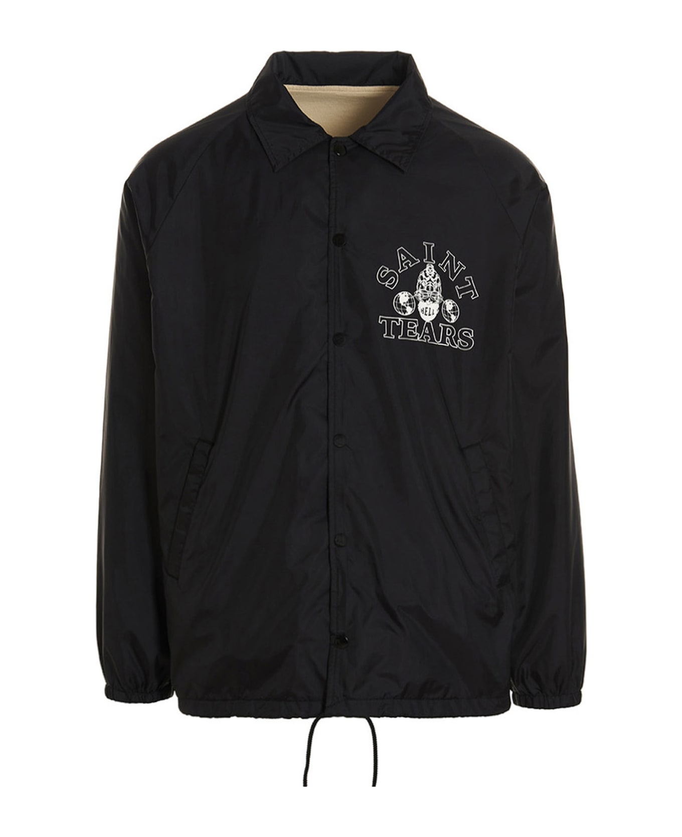 'Saint Tears' nylon jacket with print at the front and back, button closure, pockets, long cuffed sleeves, adjustable drawstring at the hem and cotton lining. Composition: 100% nylon