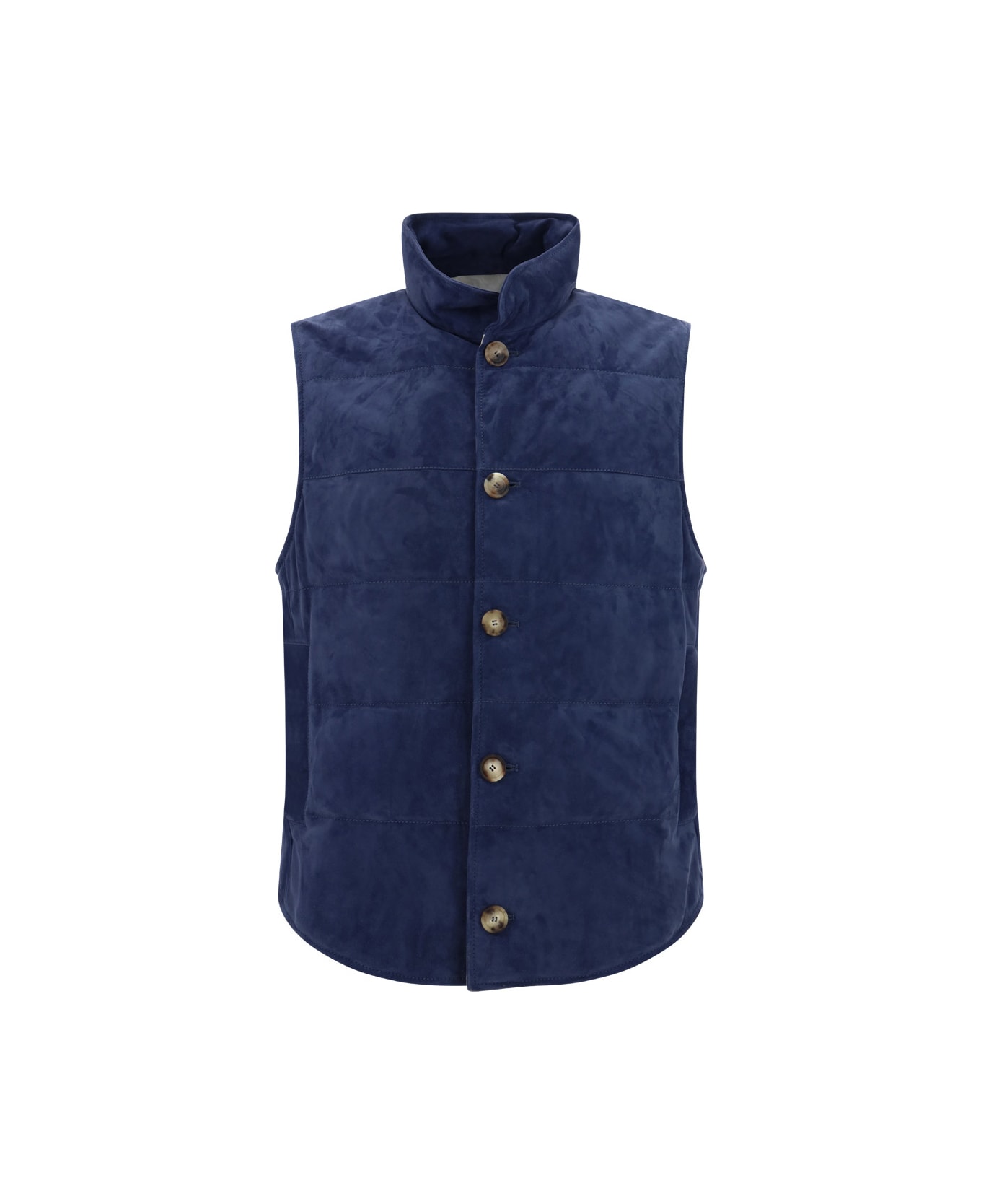 Calfskin down jacket by brunello cucinelli, high neckline, a contrasting front button fastening, two side welt pockets, an all-over quilted and padded design, and a regular fit.