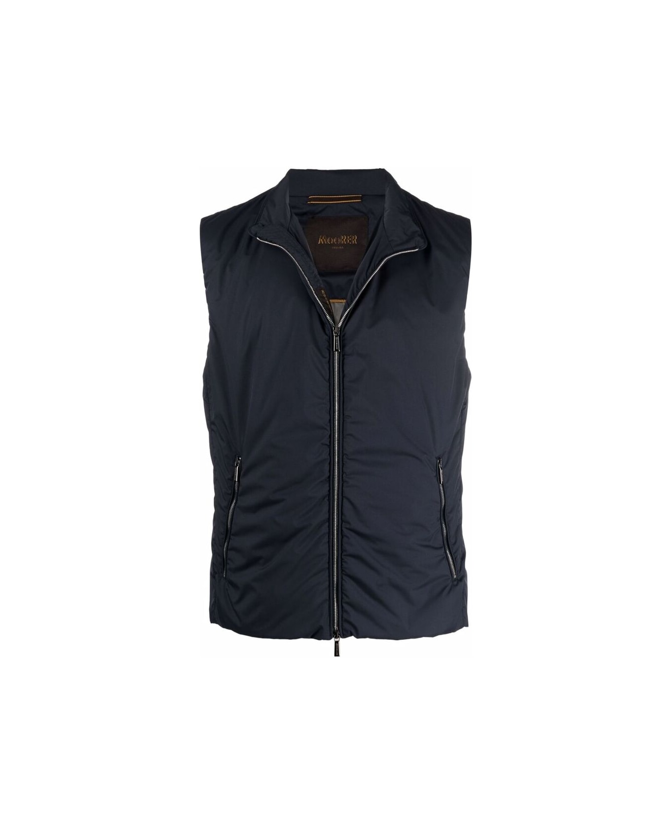 navy high neck front zip fastening sleeveless two side zip-fastening pockets