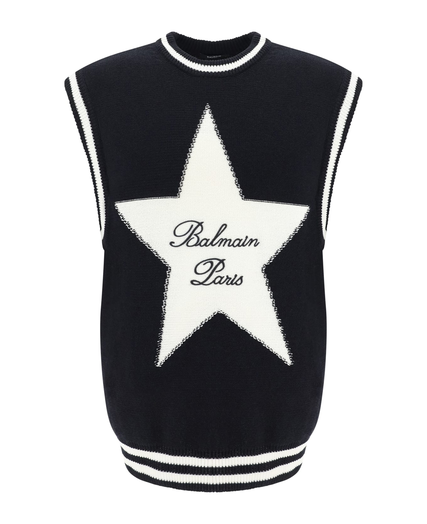 Vest by balmain, ribbed crew neck and hem, iconic contrasting embroidered monogram on front, regular fit. Composition: 44% % Cotton, 44% % Lyocell, 12% % Polyamide