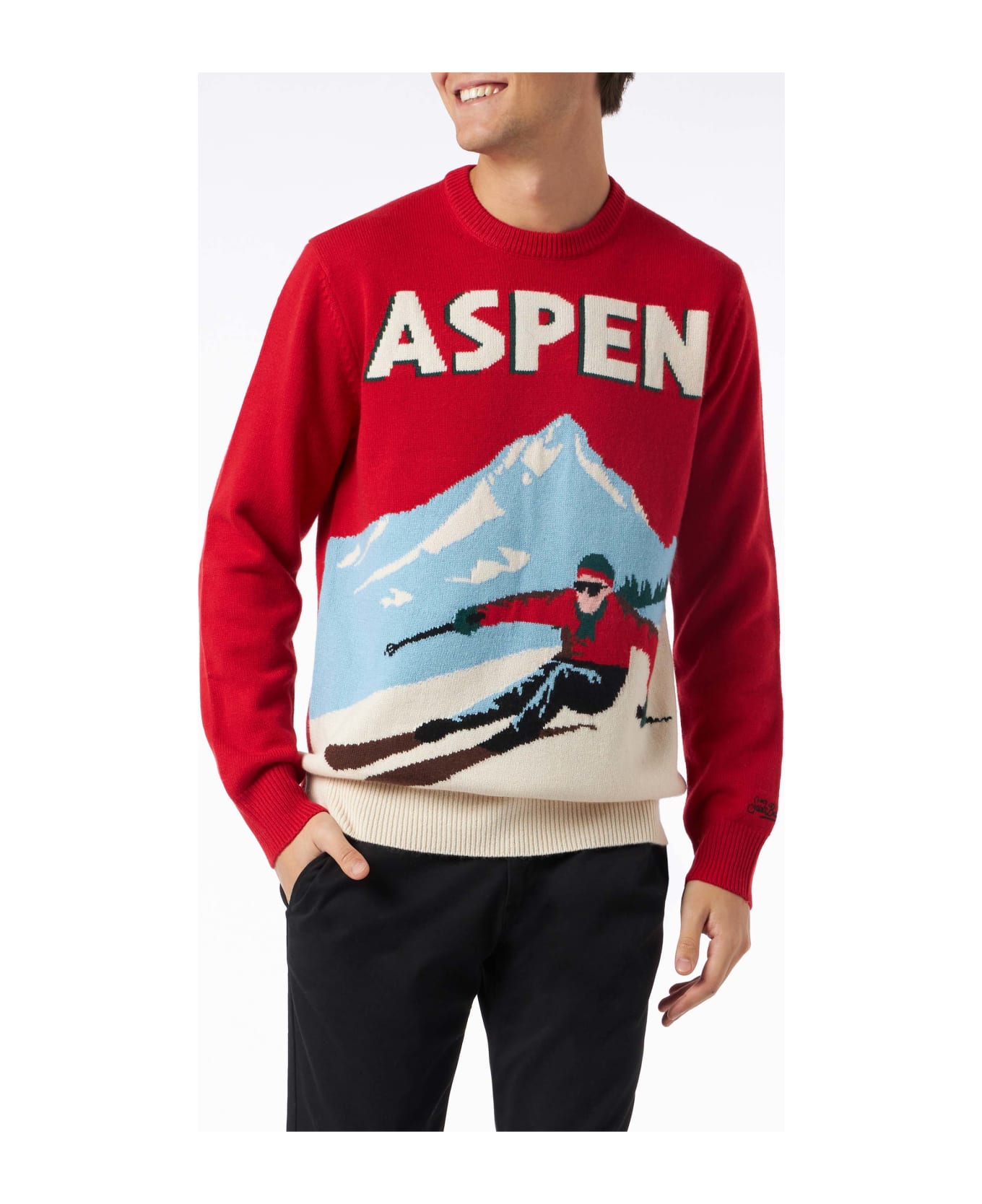 Man Crewneck Sweater With Aspen Postcard Jacquard