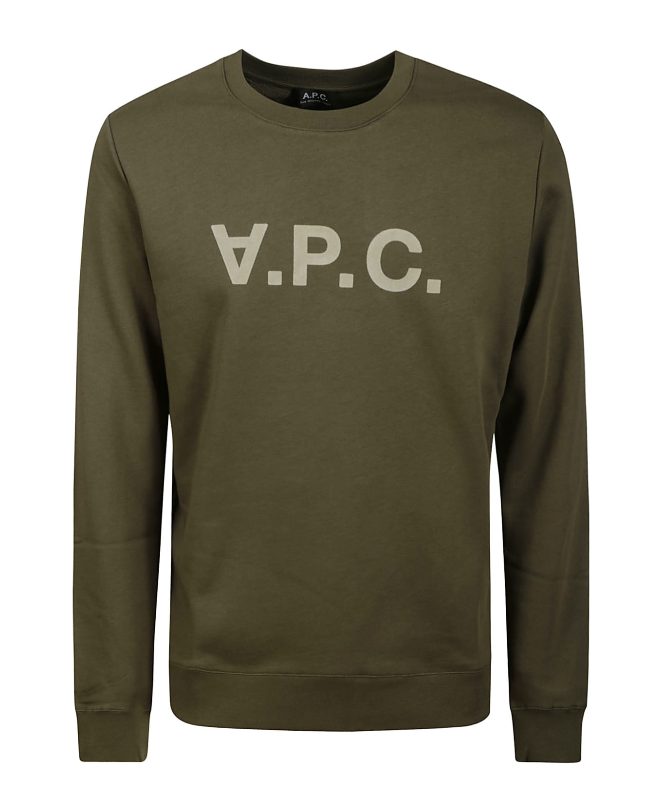 A. P. C. Green cotton sweatshirt, logo detail, ribbed edges.
