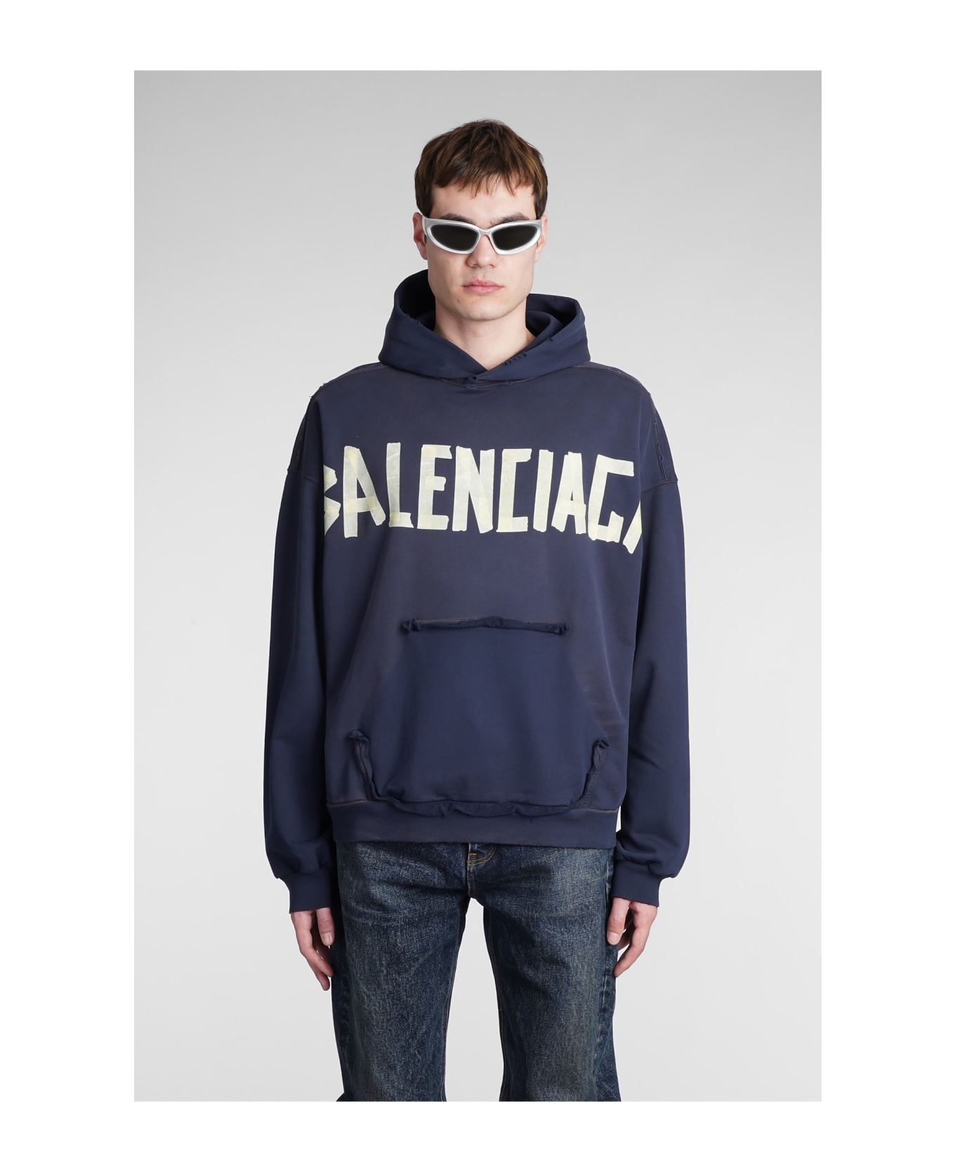 Sweatshirt in blue cotton, hood, long sleeves, logo print on front, logo print back, elastic cuffs, 100% cotton, Made in Portugal, Model is 187 and wears XS