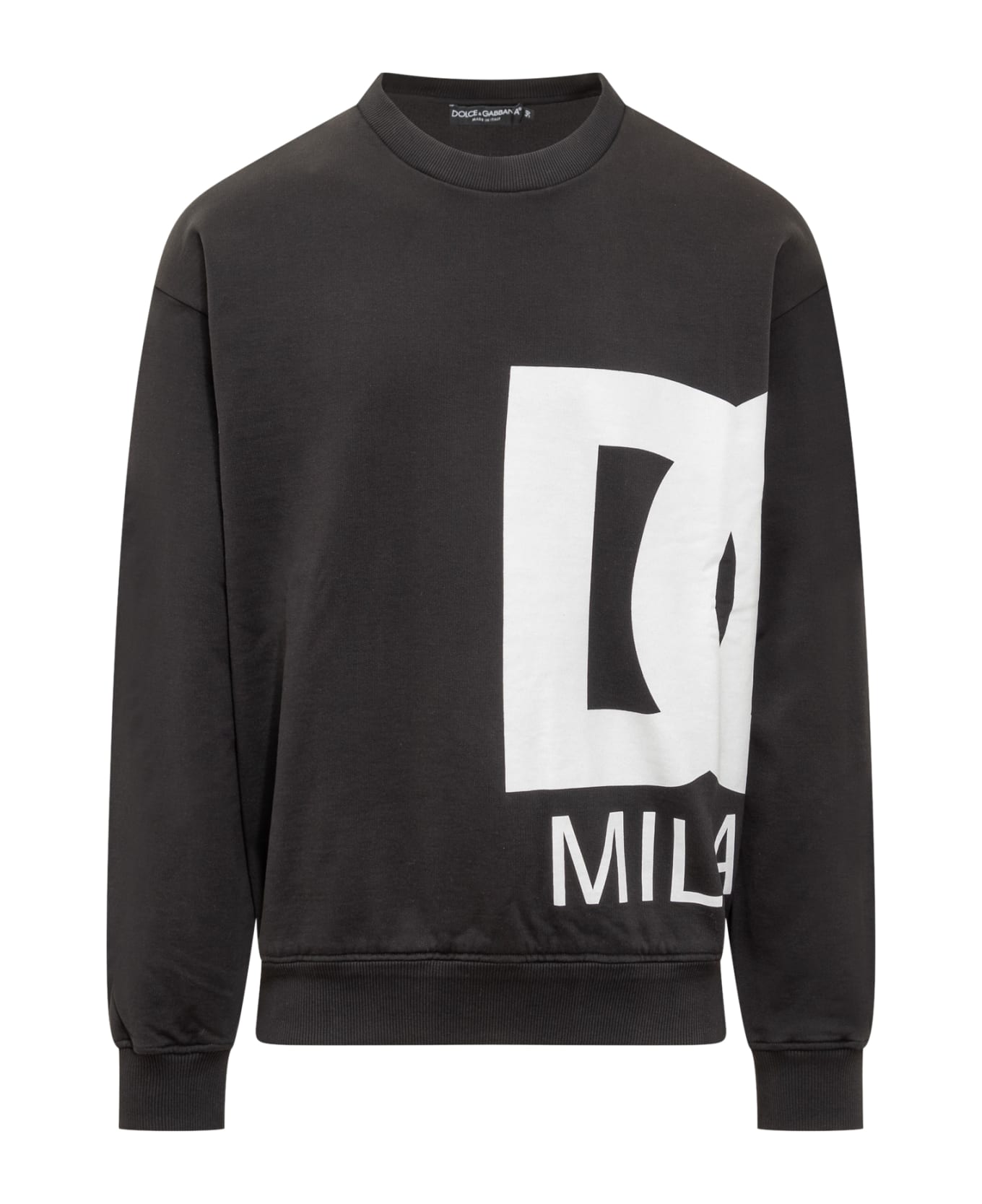 Crew neck sweatshirt. Ribbed collar, bottom and cuffs. Maxi logo printed on the front.