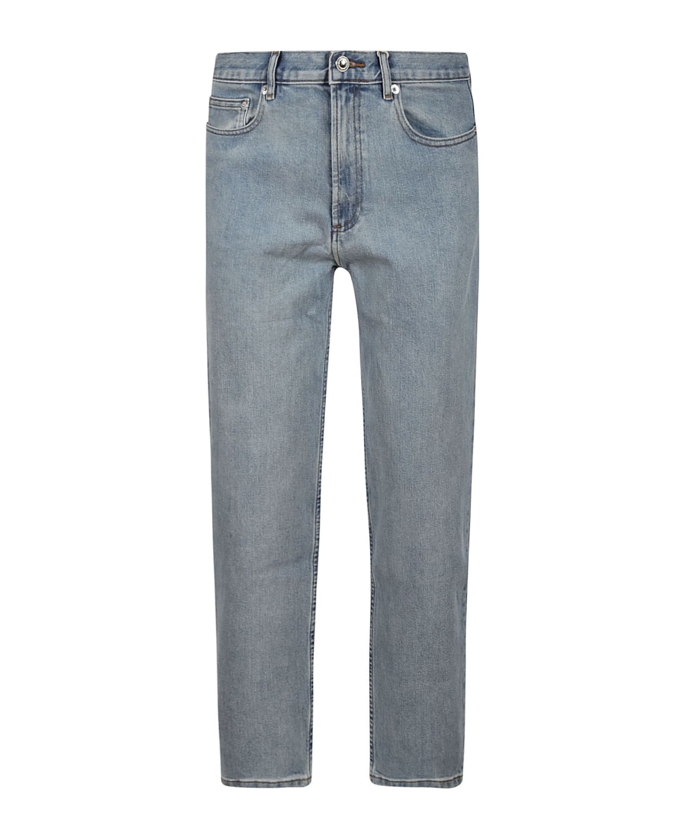 A. P. C. Cotton denim, side and back pockets, zip and button closure.