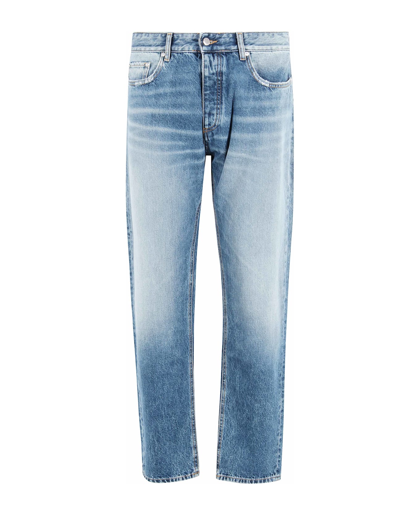 Kaye Jeans - Icon Denim - Light blue color - Stiff cotton fabric - Mid-rise waist with belt loops - Straight leg - Five-pocket style - Loose fit