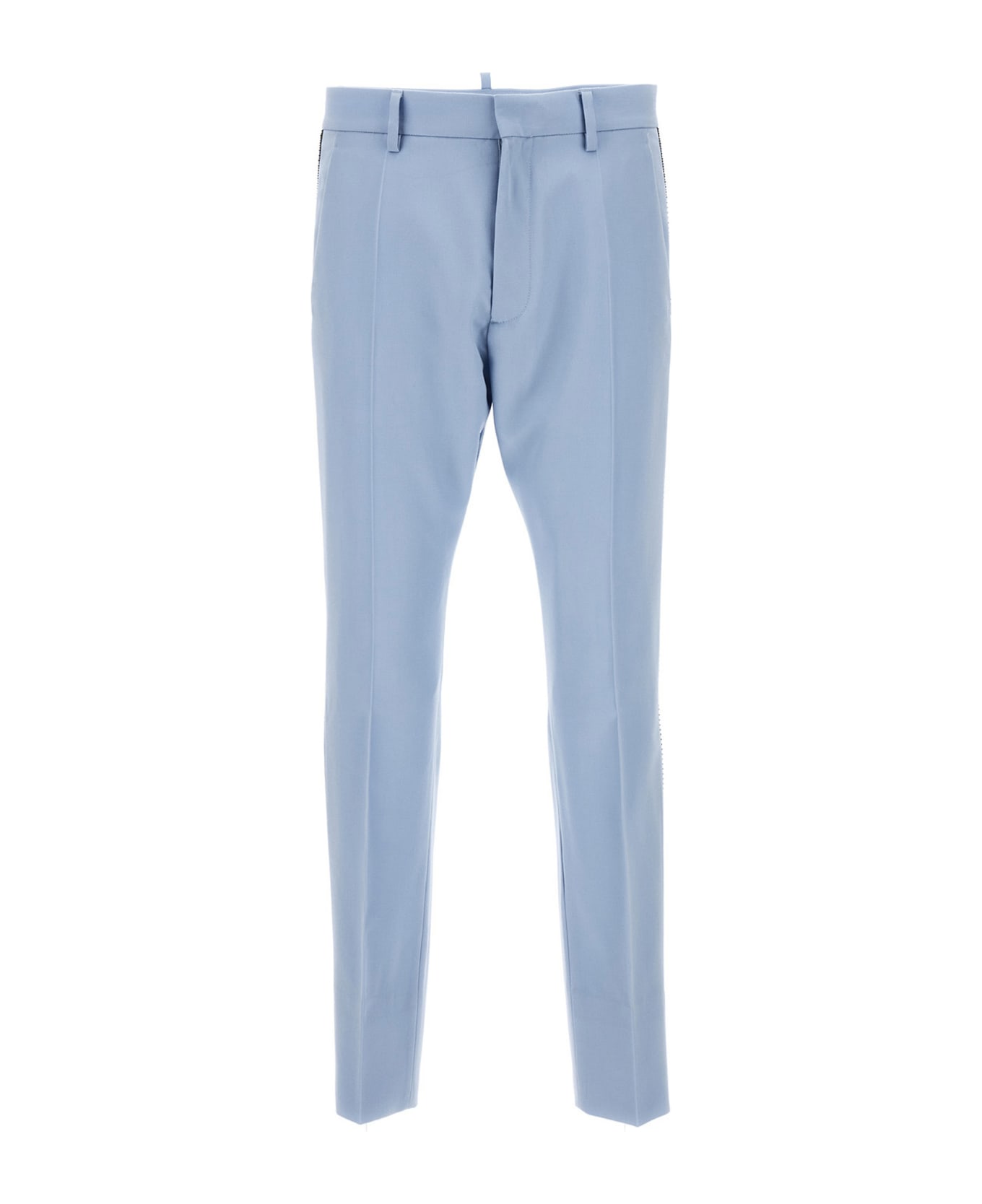 Cigarette' wool pants with contrast sequin bands, hook-and-eye zip and button closure and a central crease.