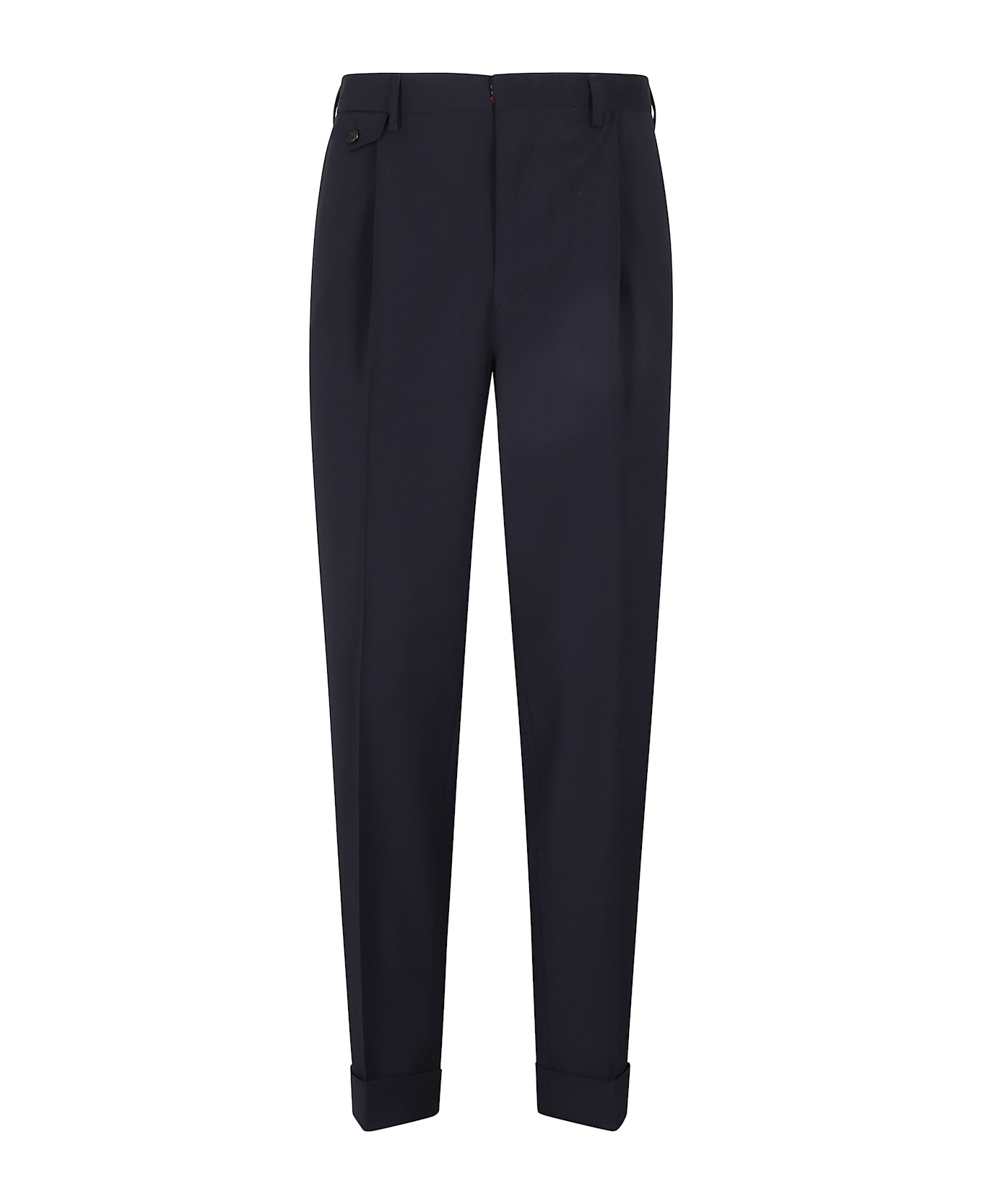 Miles pants - L. B. M. - Blue color - Bistretch wool fabric - Regular waistband with belt loops - Tapered leg with darts - Side america pockets - Turn-up hem - Hook and zipper front closure - Loose fit