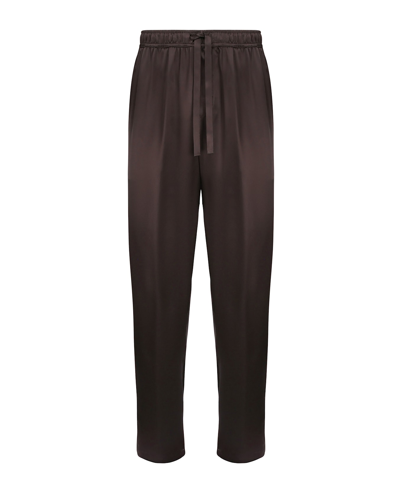 -Silk pants with piping at the sides -Drawstring waist -Regualr fit -Size shown in photo is 48 -Made in Italy -Color: Brown