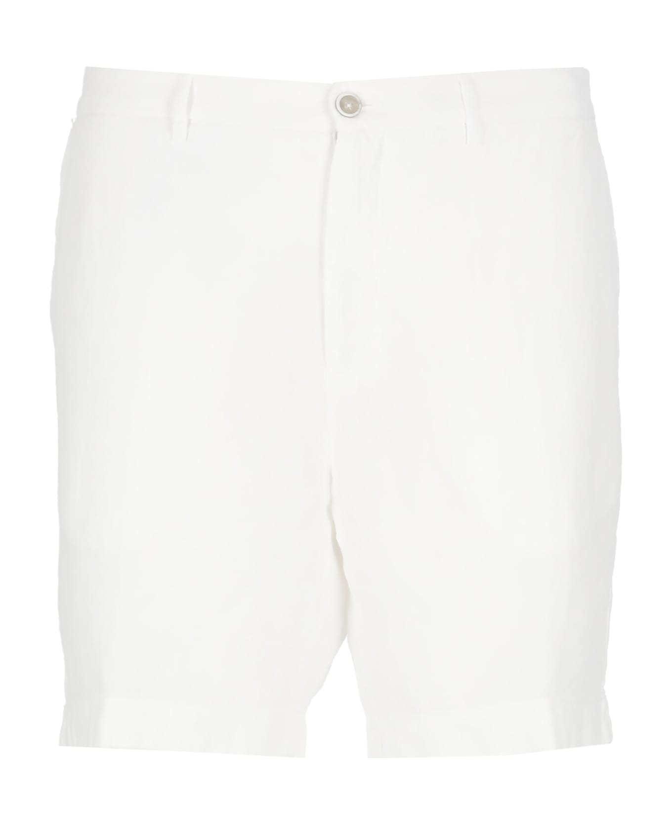 - White 120% Lino linen bermuda for man - Belt loops - Two side slit pockets - Two rear welt pockets with button - Front zip and button fastening - All-over striped pattern Composition: 100% Linen