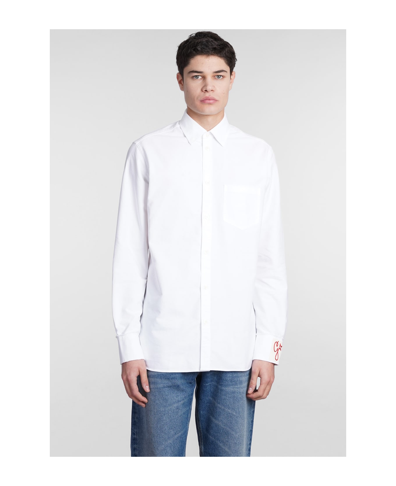Alvise Shirt in white cotton, collar, frontal buttoning, long sleeves, 100% cotton, Made in Italy, Model is 1. 83 and wears size S
