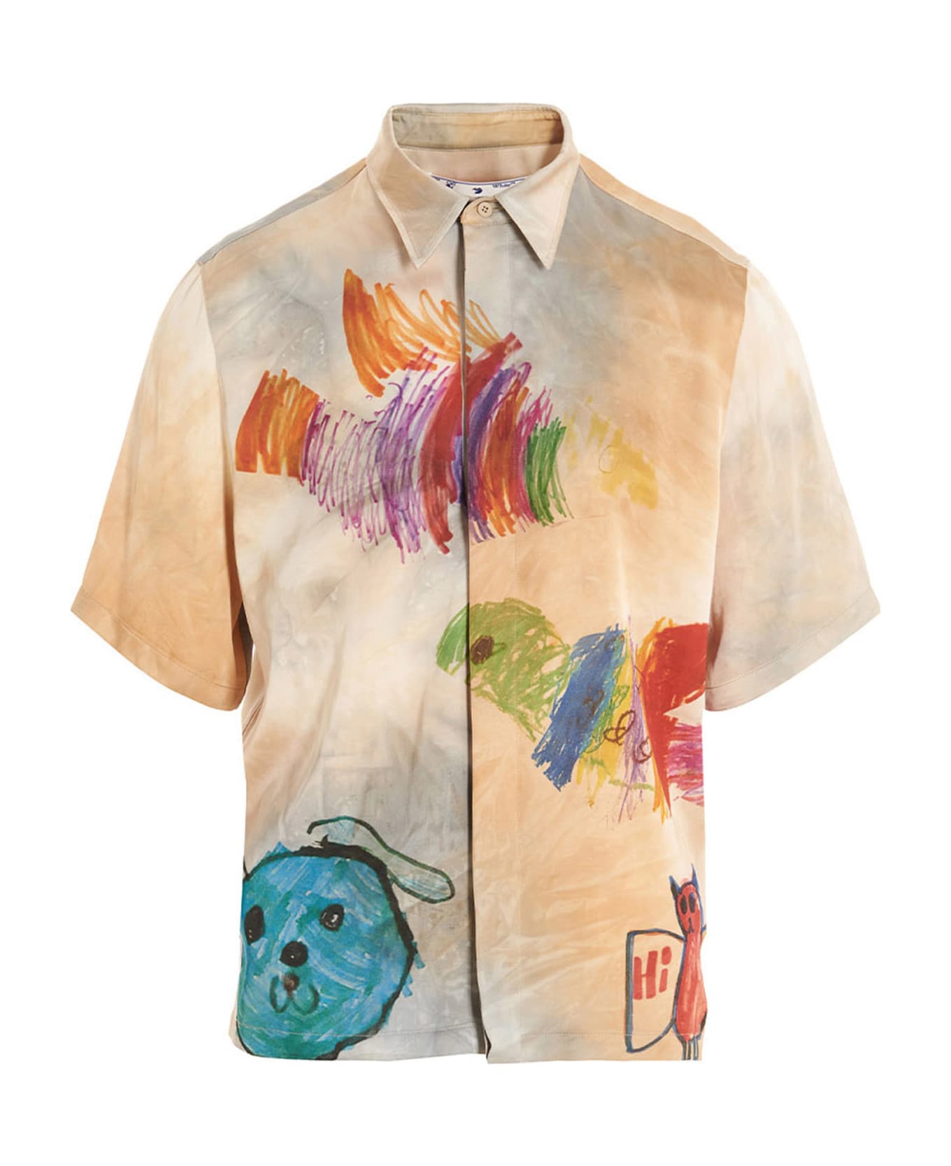 Cartoon satin' viscose shirt with alloprint, short sleeves, a covered button closure.