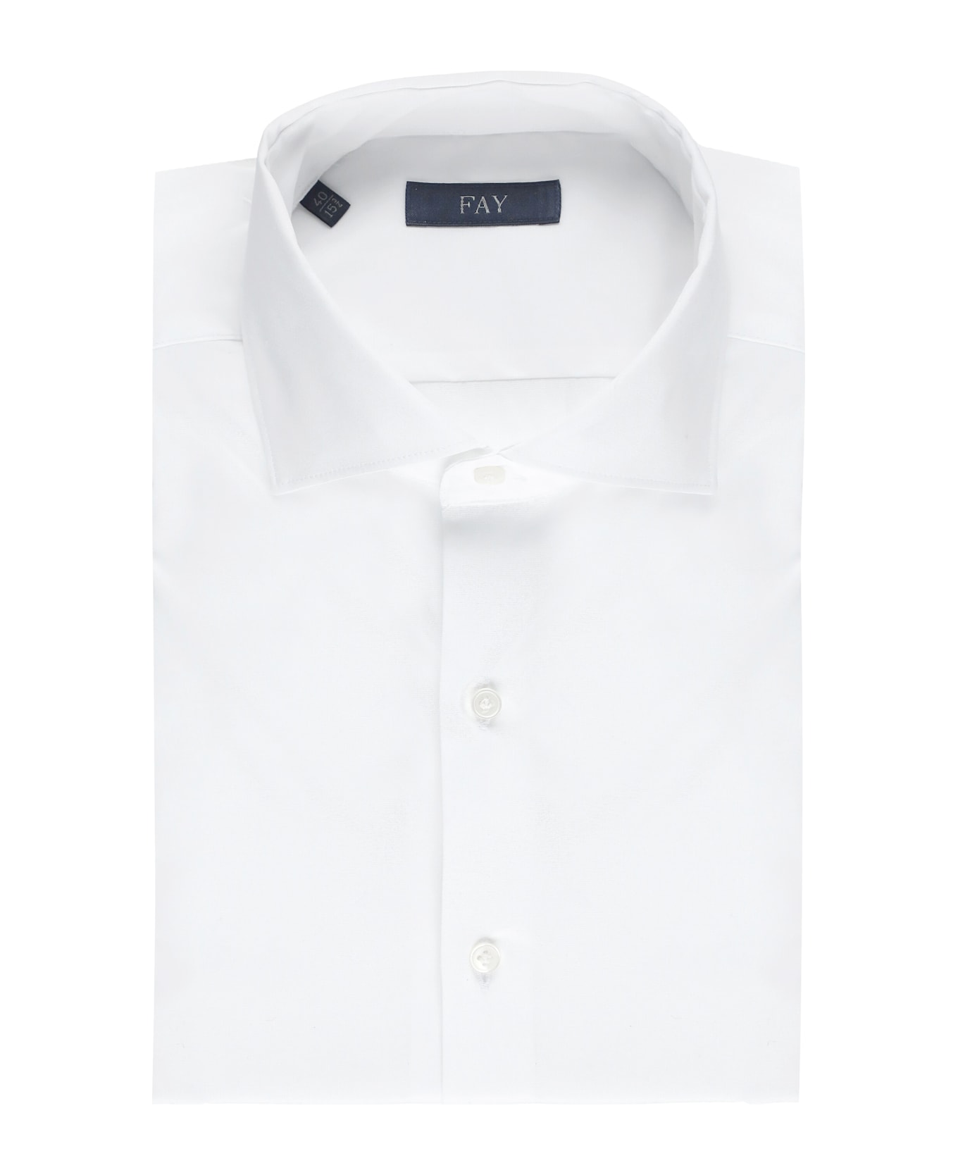 - White Fay cotton man's shirt - Collar - Long sleeves with buttons at hem - Front buttons fastening