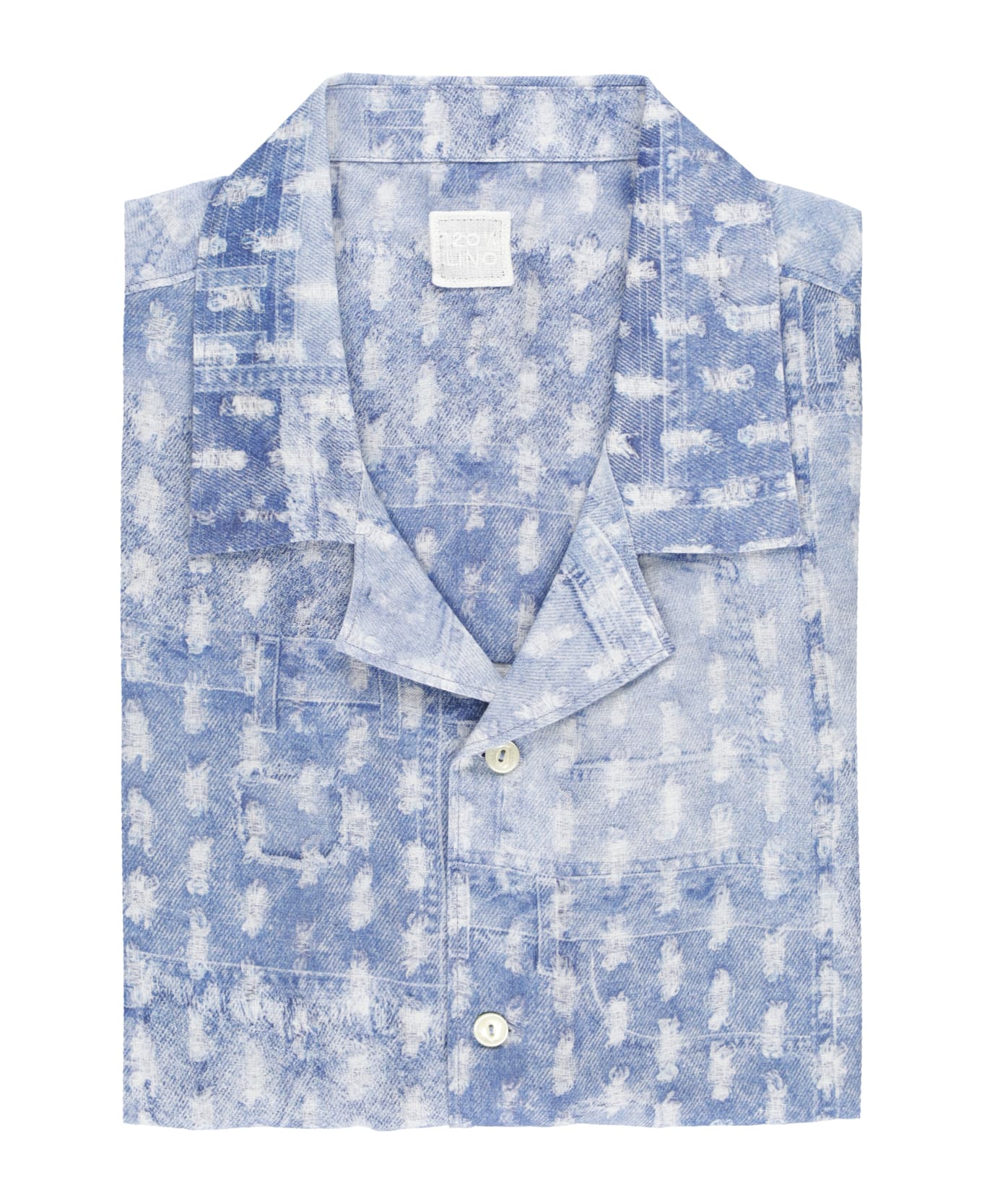 - Light blue 120% Lino linen shirt for man - Collar - Short sleeves - Washed effet - Front buttons fastening
