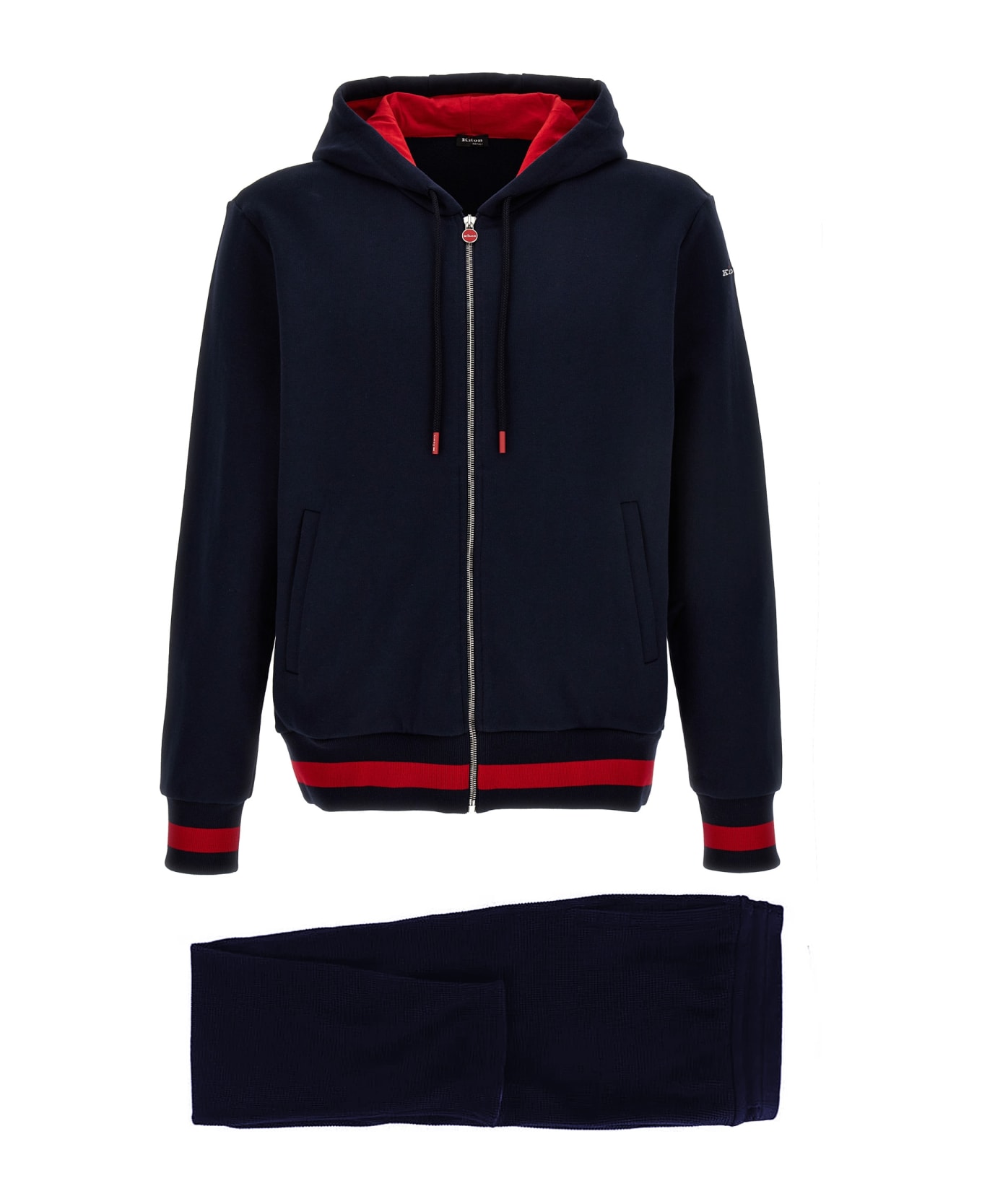 Cotton tracksuit consisting of hoodie with zip closure, pockets, long sleeves with cuffs, joggers with elastic and drawstring at the waist, pockets. Composition: 100% cotton
