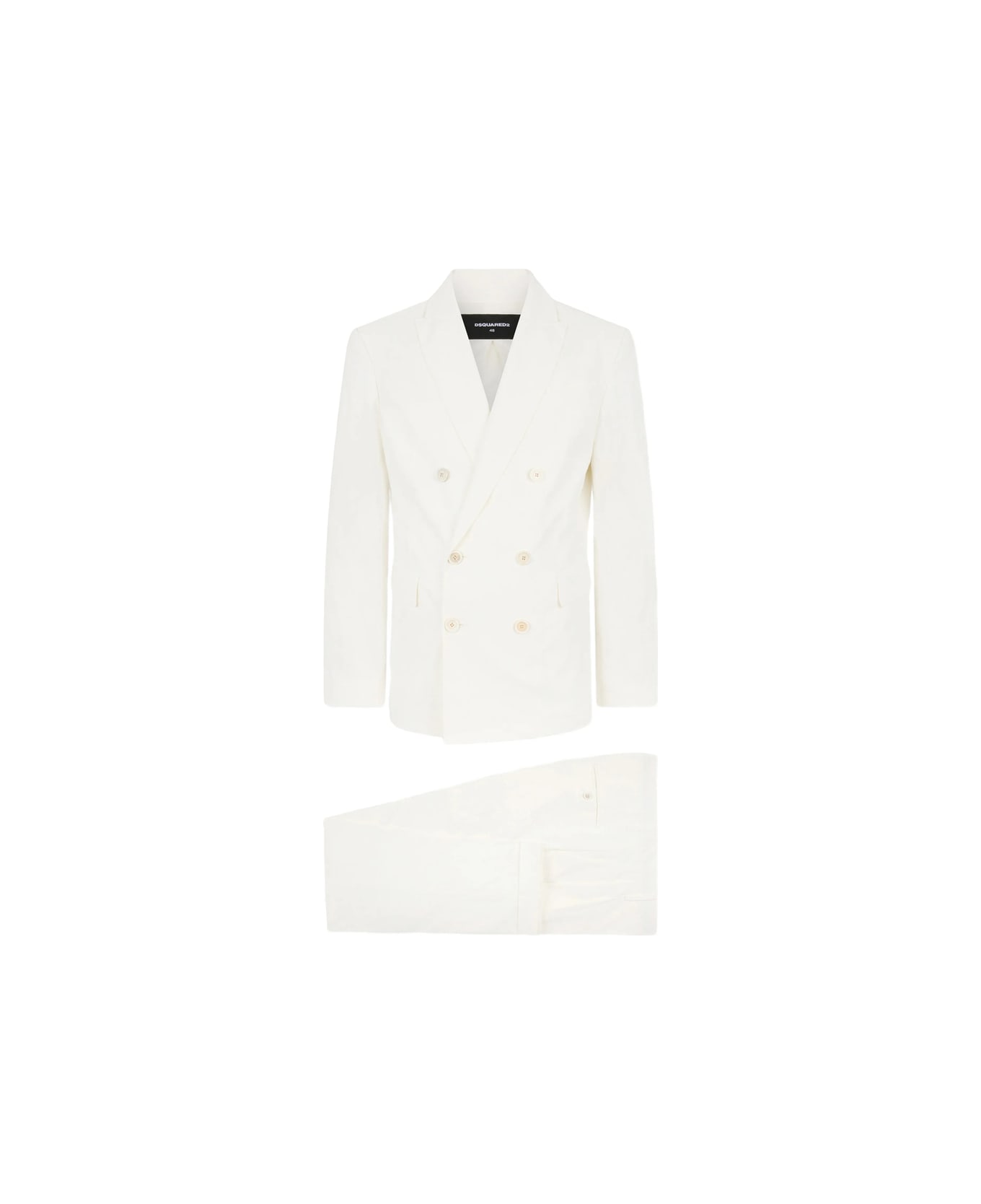 white double-breasted button fastening notched lapels front flap pockets buttoned cuffs