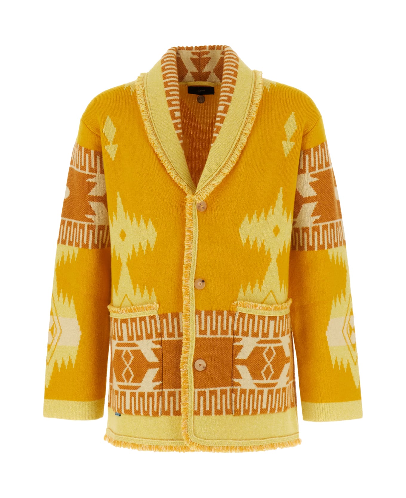 Cardigan realized in pure cashmere characterized by Icon Jacquard embroidery on the entire surface enriched by fringed trimmings. -V neckline -Buttons closure -Two patch pockets at the front