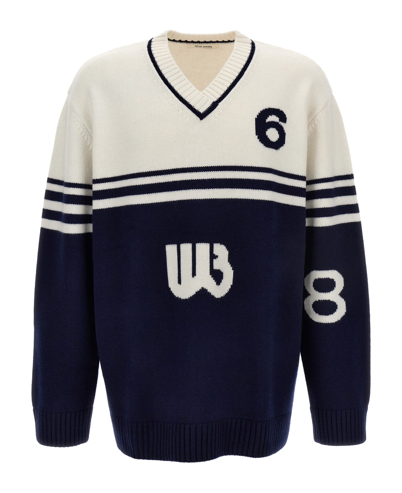 'Motif' wool sweater with V-neck and front intarsia.
