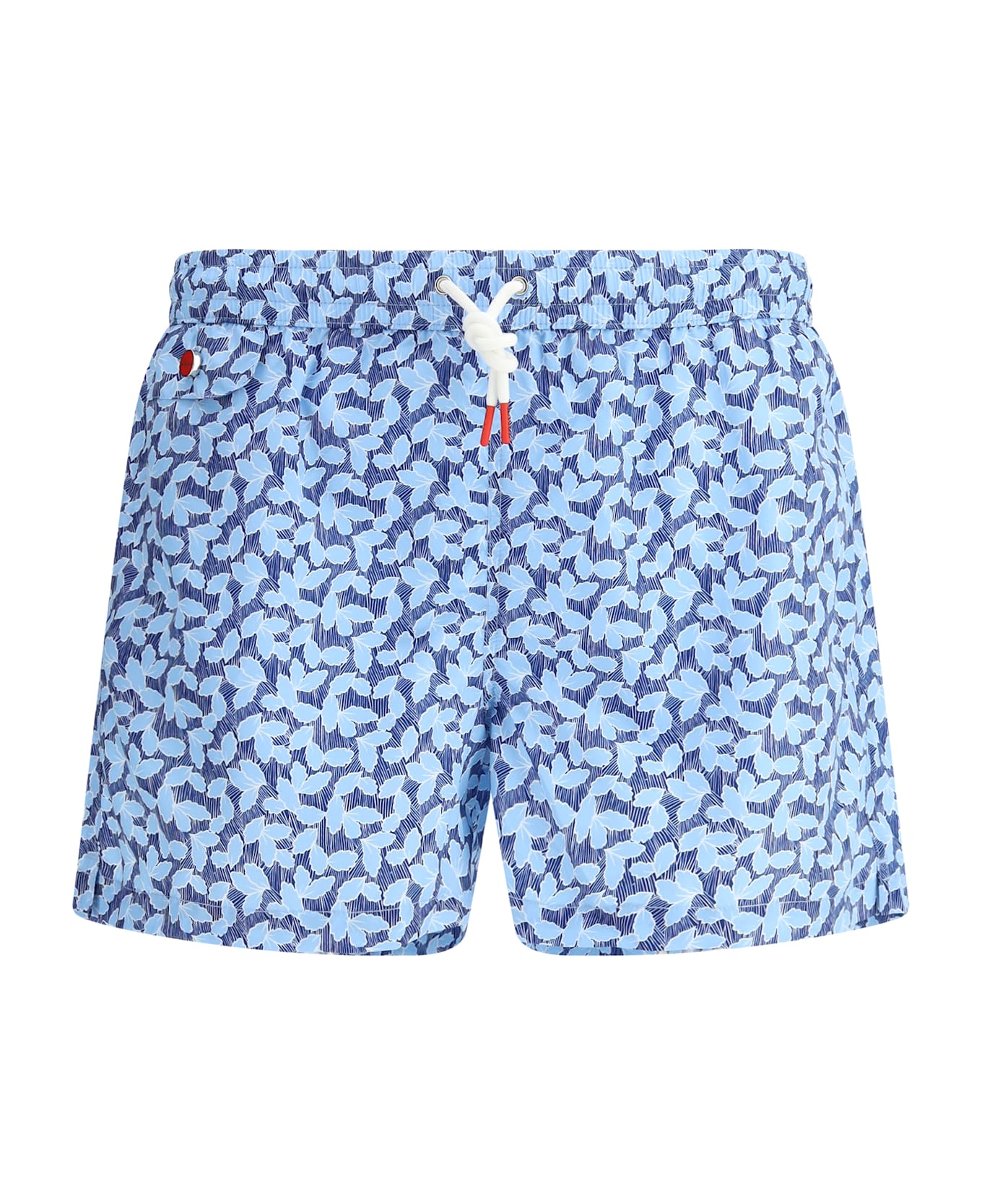 Kiton's swimshorts is a stylish and functional garment designed for those seeking style and comfort. the adjustable elastic waistband with drawstring ensures a custom fit, while side welt pockets offer convenience for small items. the flap patch welt pocket on the back, embellished with the brand's iconic embroidered monogram, adds a distinctive and luxurious detail. the flap patch pocket on the front completes the practical and stylish design. the contrasting all-over repeated foliage pattern gives the swimsuit a fresh, dynamic and refined look, combining elegance and modernity.