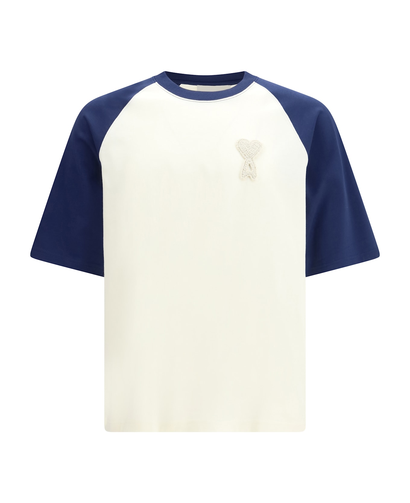 The ami de coeur t-shirt with knitted appliqué by ami paris is a modern and sophisticated garment, featuring a boxy cut that offers a relaxed and comfortable fit. the raglan sleeves add a sporty touch, while the crocheted ami de c ur appliqué on the chest provides a distinctive, handcrafted detail. the tone-on-tone ami embroidery at the base of the neck on the back completes the design with a discreet and refined touch. perfect for those looking for a unique t-shirt that combines comfort and contemporary style.