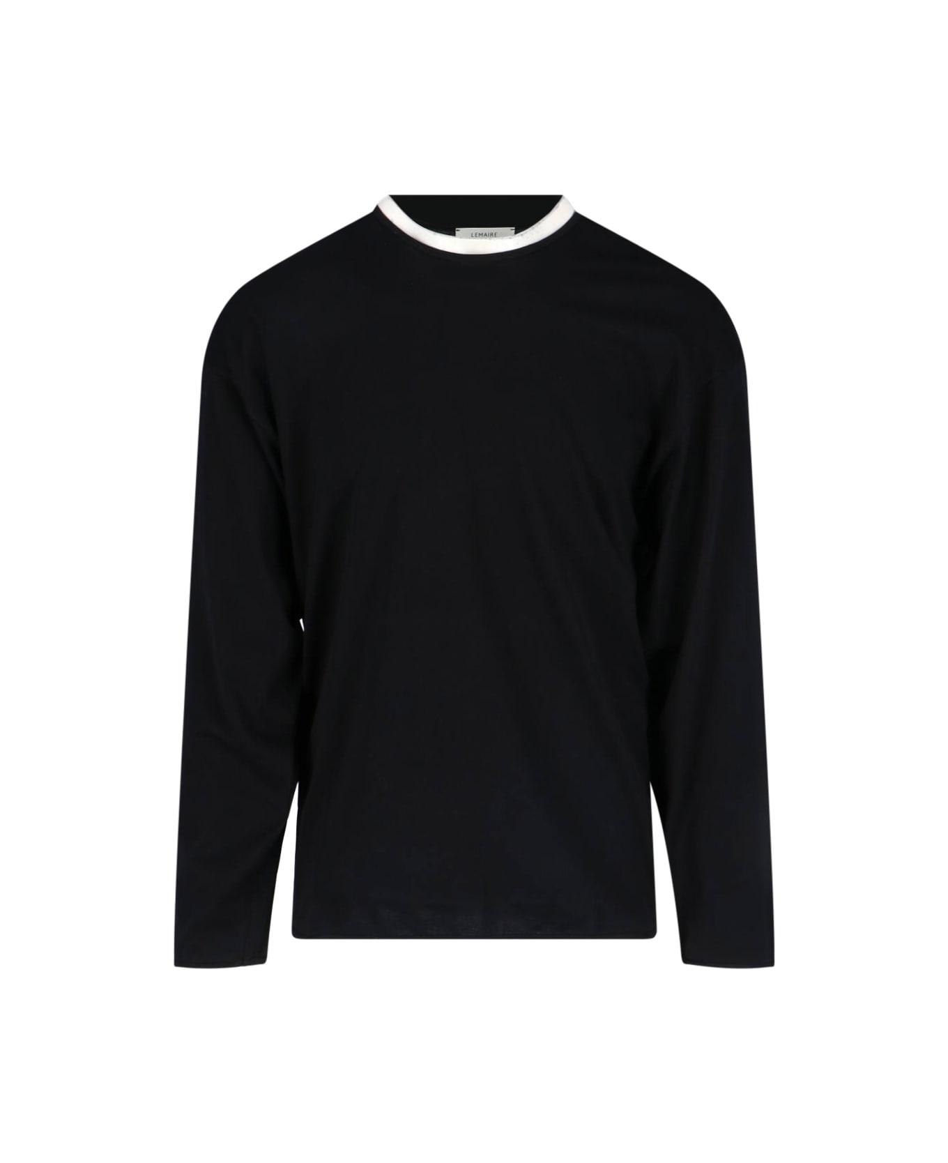 Lemaire classic black cotton t-shirt with contrasting crewneck, straight hem.