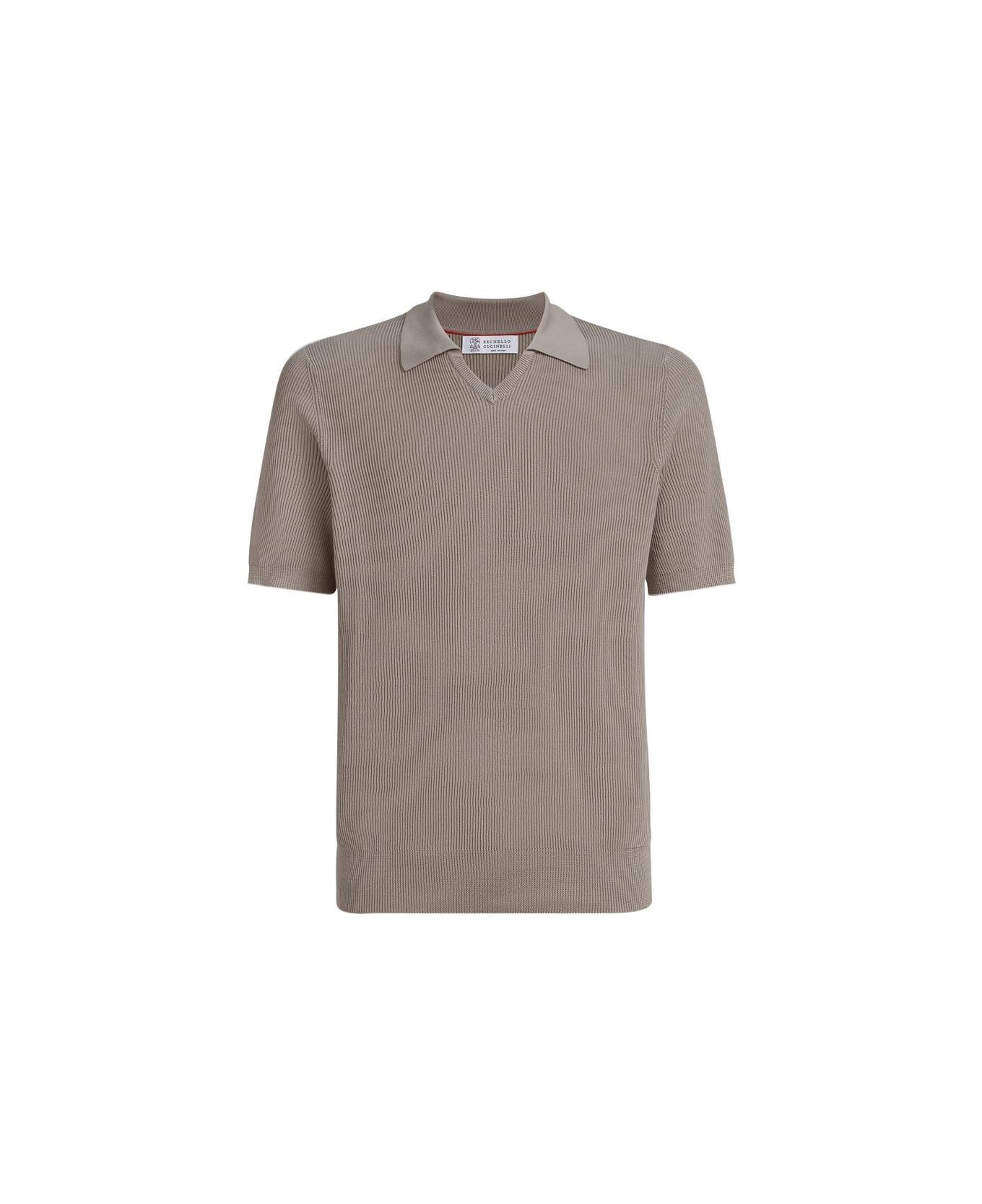 light brown cotton ribbed knit V-neck short sleeves polo collar