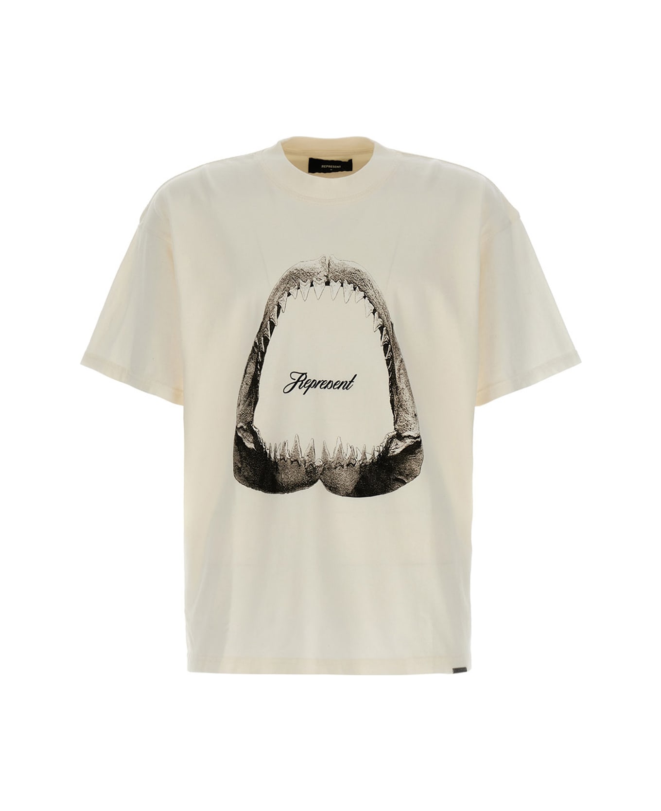 Shark Jaws' cotton, crewneck t-shirt with front print, and short sleeves.