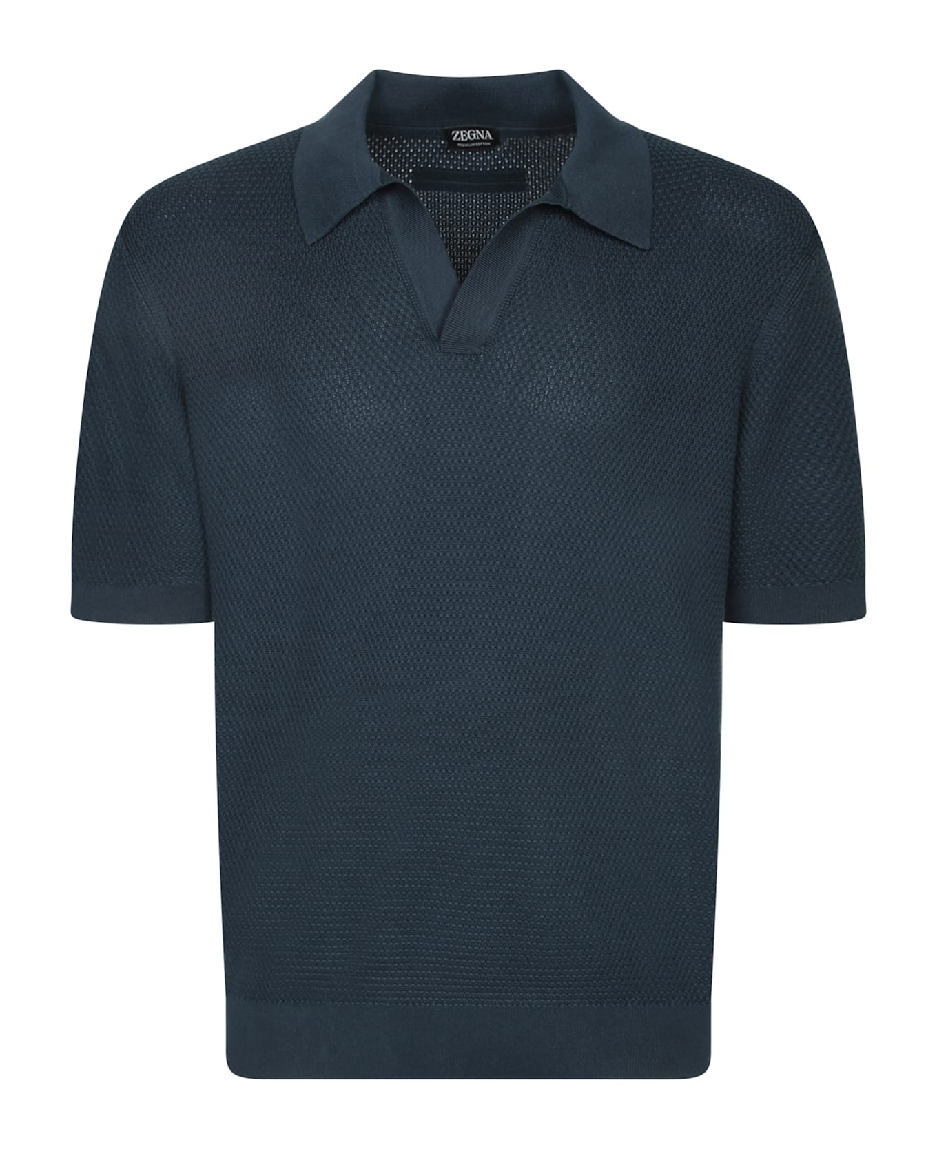 This Zegna polo, crafted in fine teal blue cotton, blends elegance and comfort. The design, characterized by textured knit work, provides a touch of uniqueness.