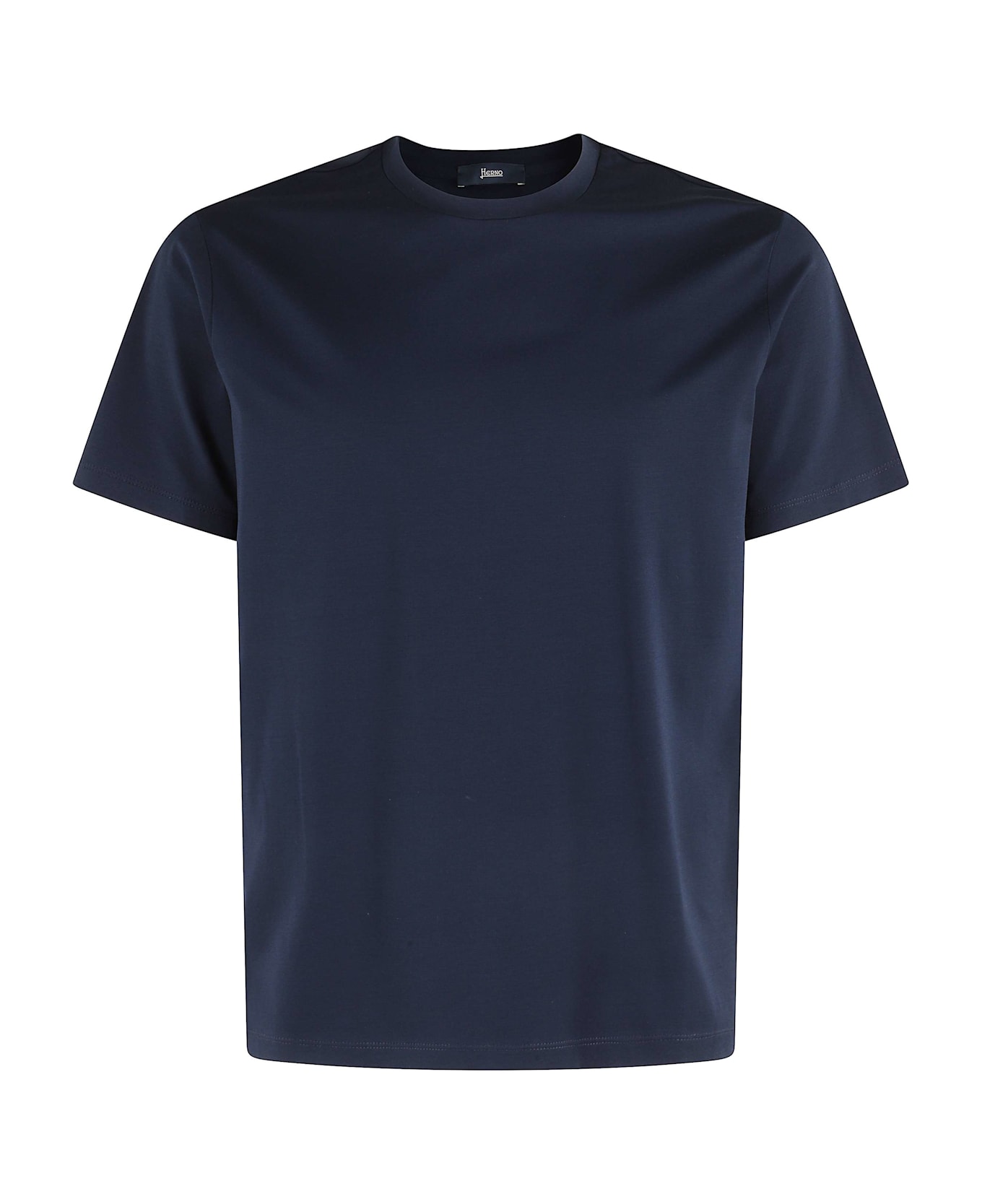 Category: T-shirt Article: T-shirt basic Brand: Herno Color: Navy blue Neckline: Crew neck Details: Stretch fabric SIZE AND FIT Fit: Regular Sleeve: Short