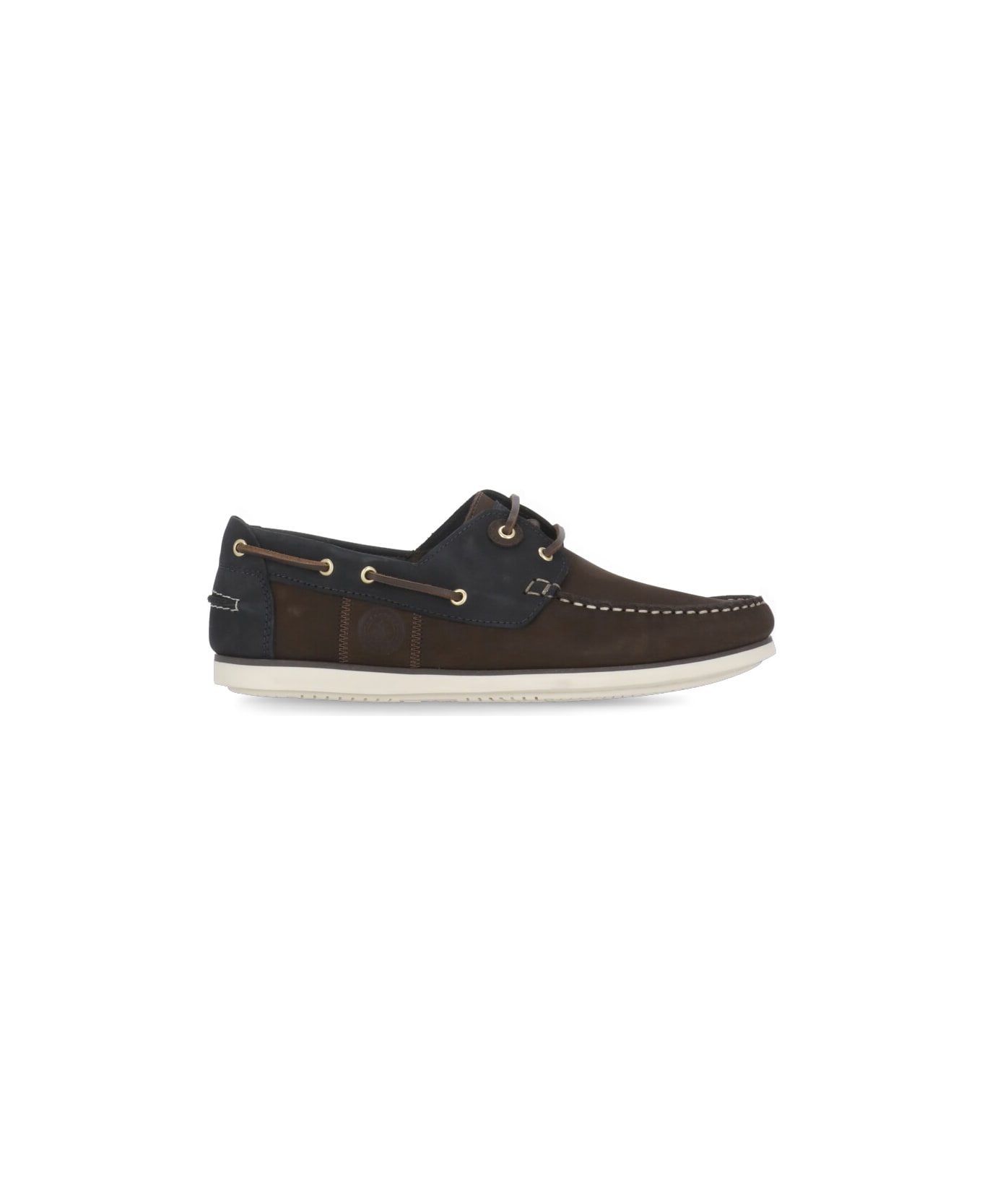 - Brown and blue Barbour leather loafers for man - Round toe - Side imprinted logo - Laces fastening