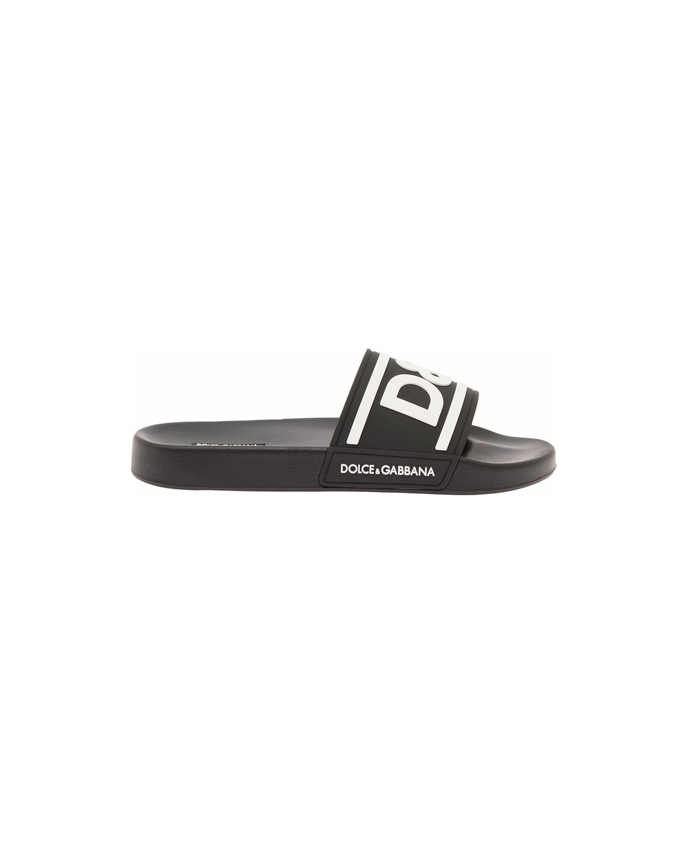 White Pool Slide In Rubber With Embossed Logo Dolce& Gabbana Man